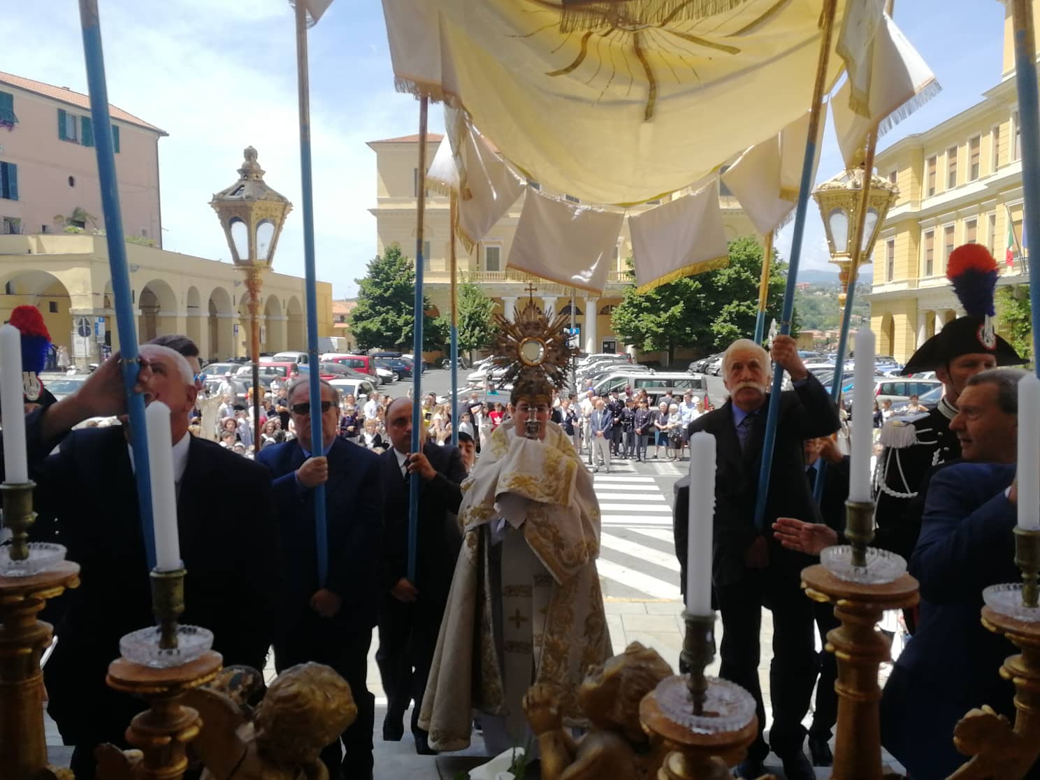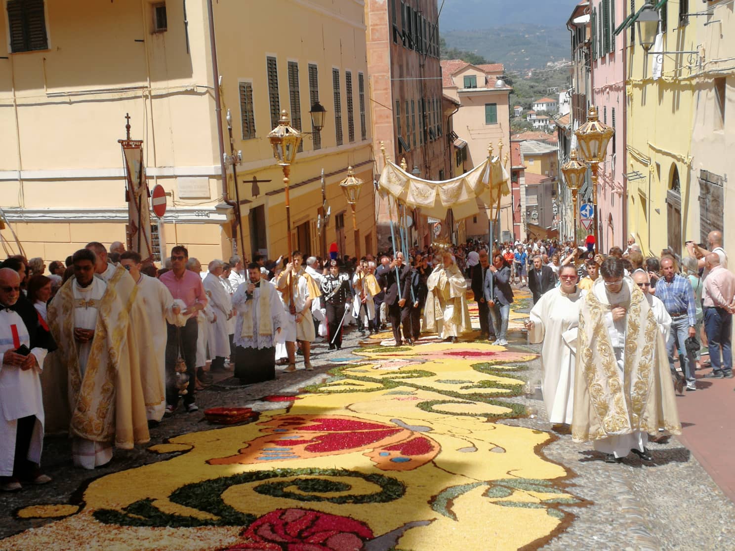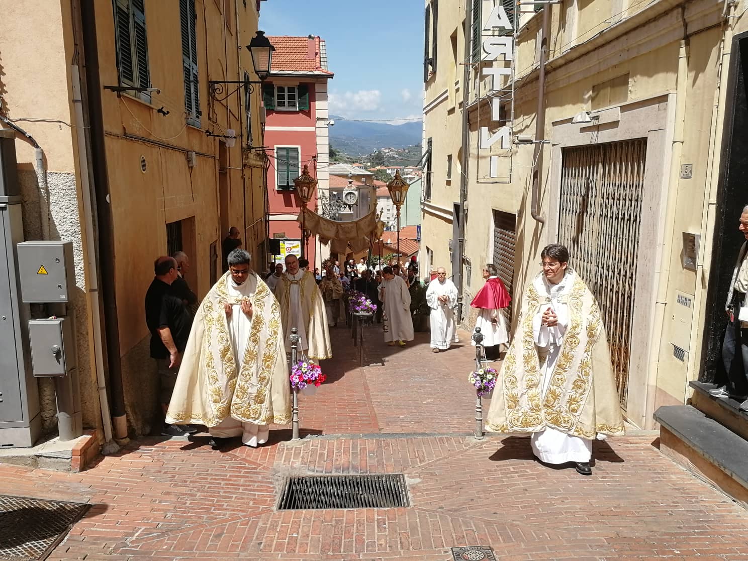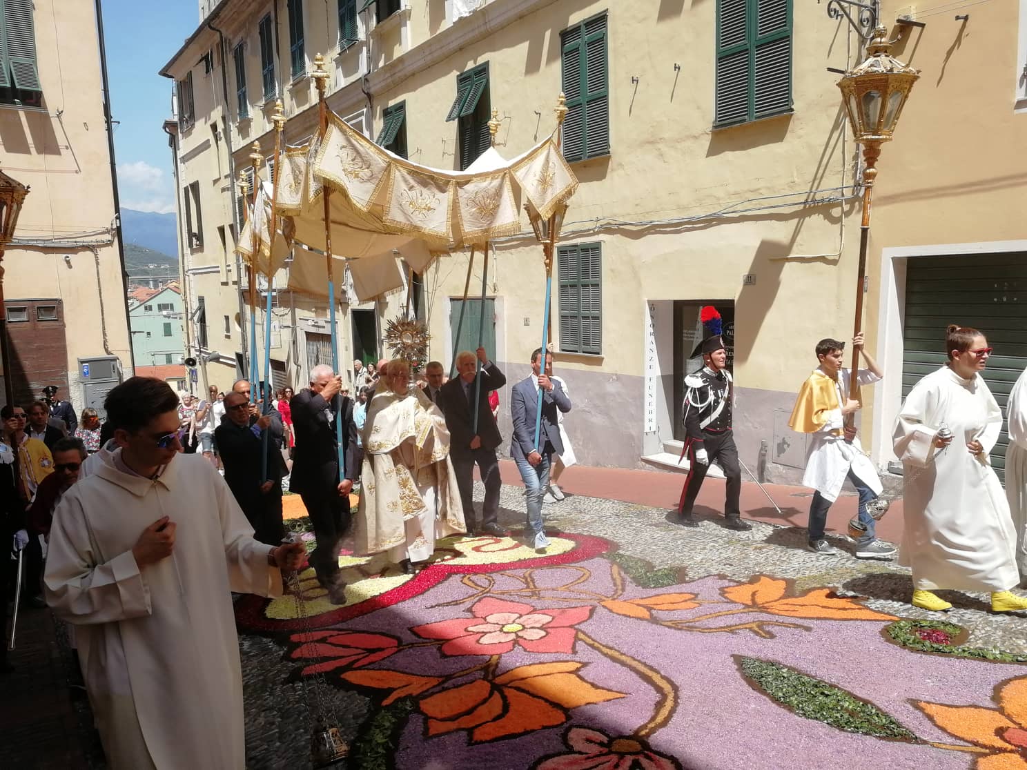 E’ stata celebrata oggi, domenica 3 giugno, in Duomo gremito la “solennità del Corpus Domini”. La messa è stata presieduta dal Parroco Don Lucio Fabris coadiuvato da altri parroci dell’imperiese. Al termine della Messa si è snodata la processione per le vie di Porto Maurizio, con la tradizionale infiorata che ha avuto luogo in via Carducci.