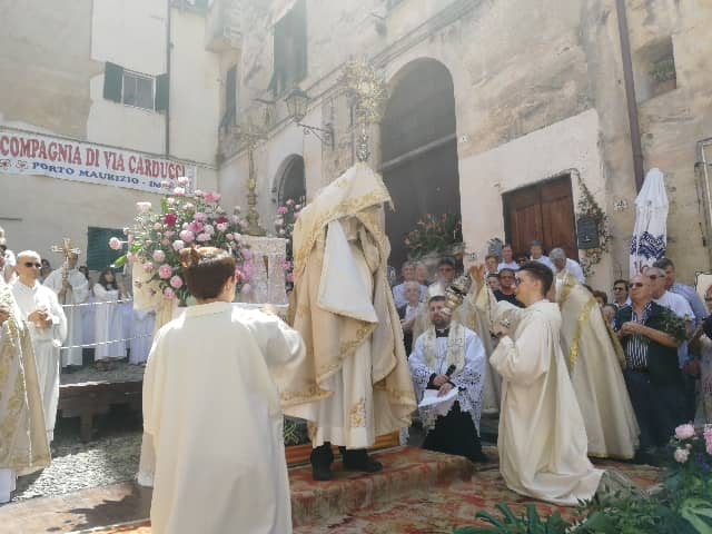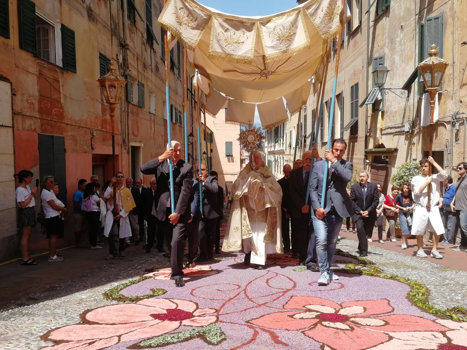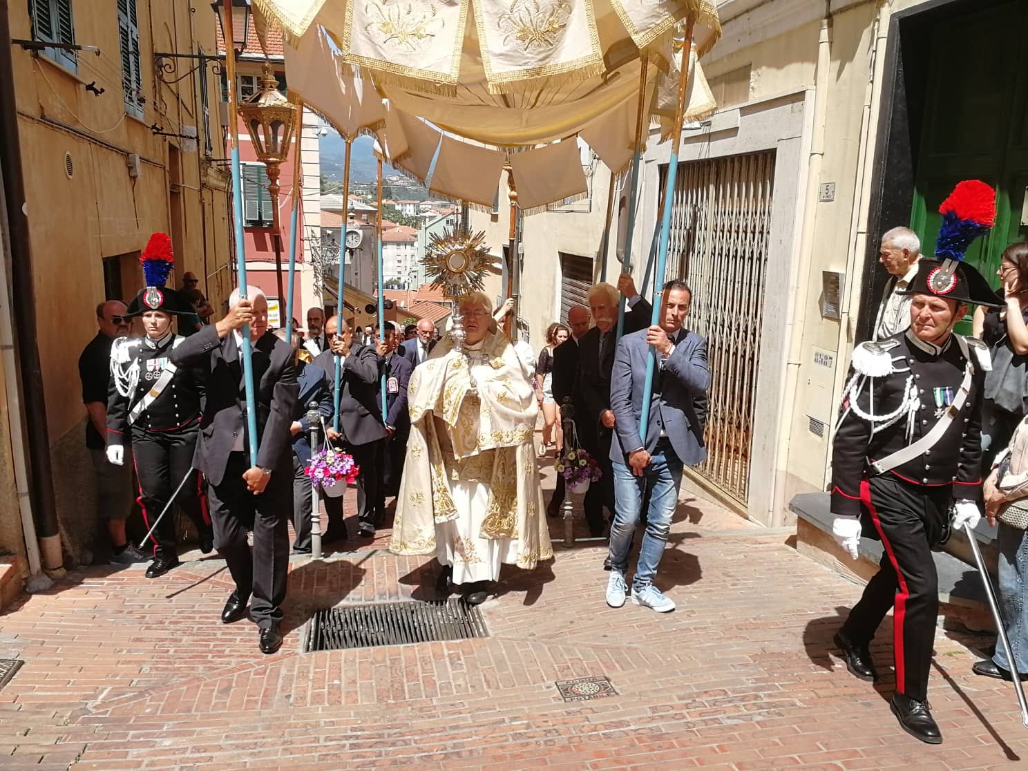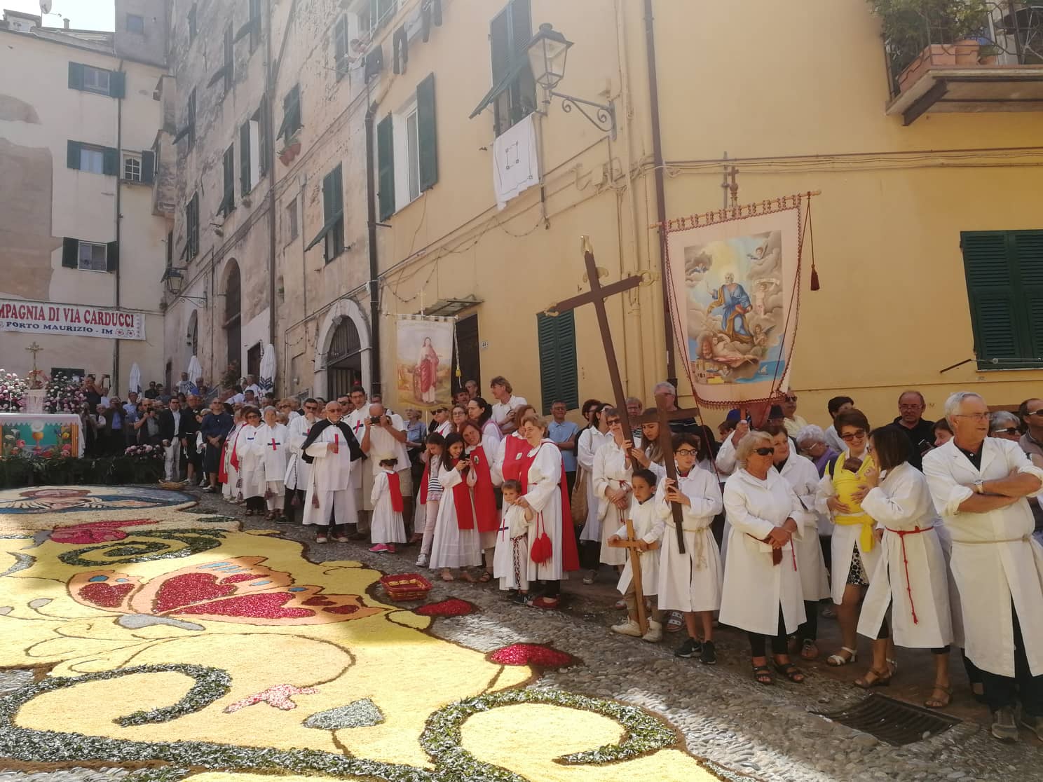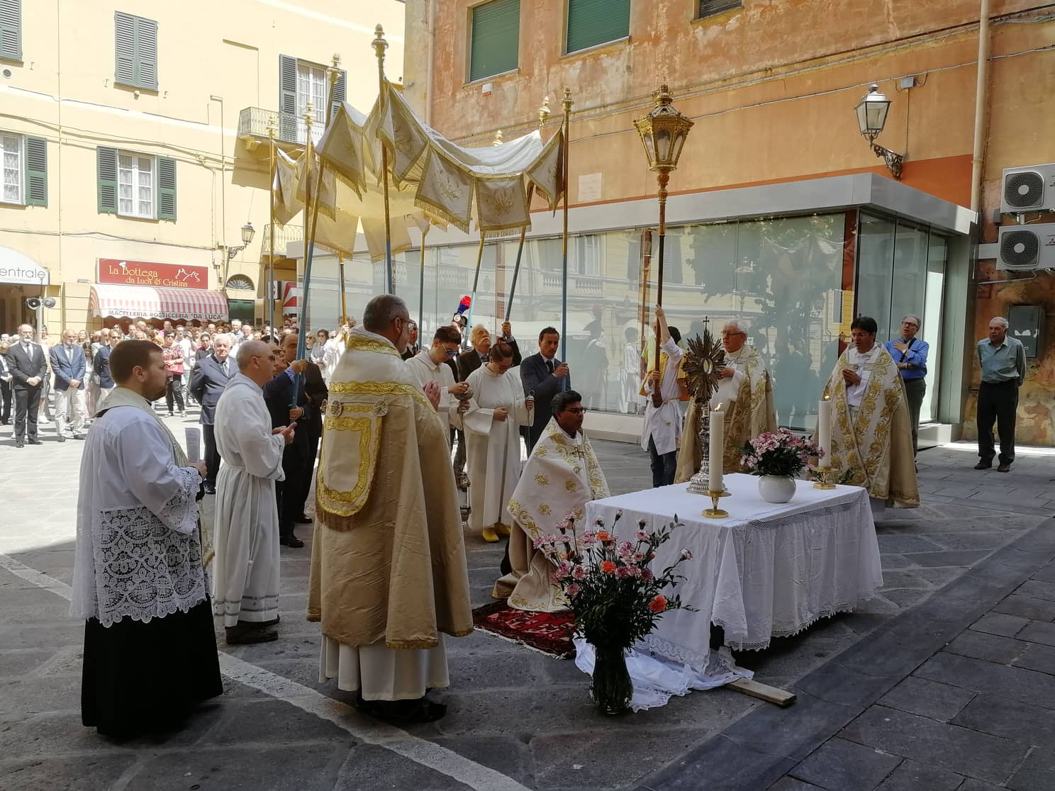 E’ stata celebrata oggi, domenica 3 giugno, in Duomo gremito la “solennità del Corpus Domini”. La messa è stata presieduta dal Parroco Don Lucio Fabris coadiuvato da altri parroci dell’imperiese. Al termine della Messa si è snodata la processione per le vie di Porto Maurizio, con la tradizionale infiorata che ha avuto luogo in via Carducci.