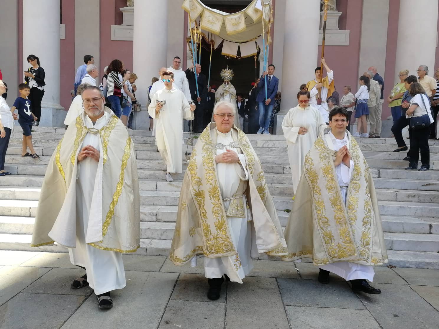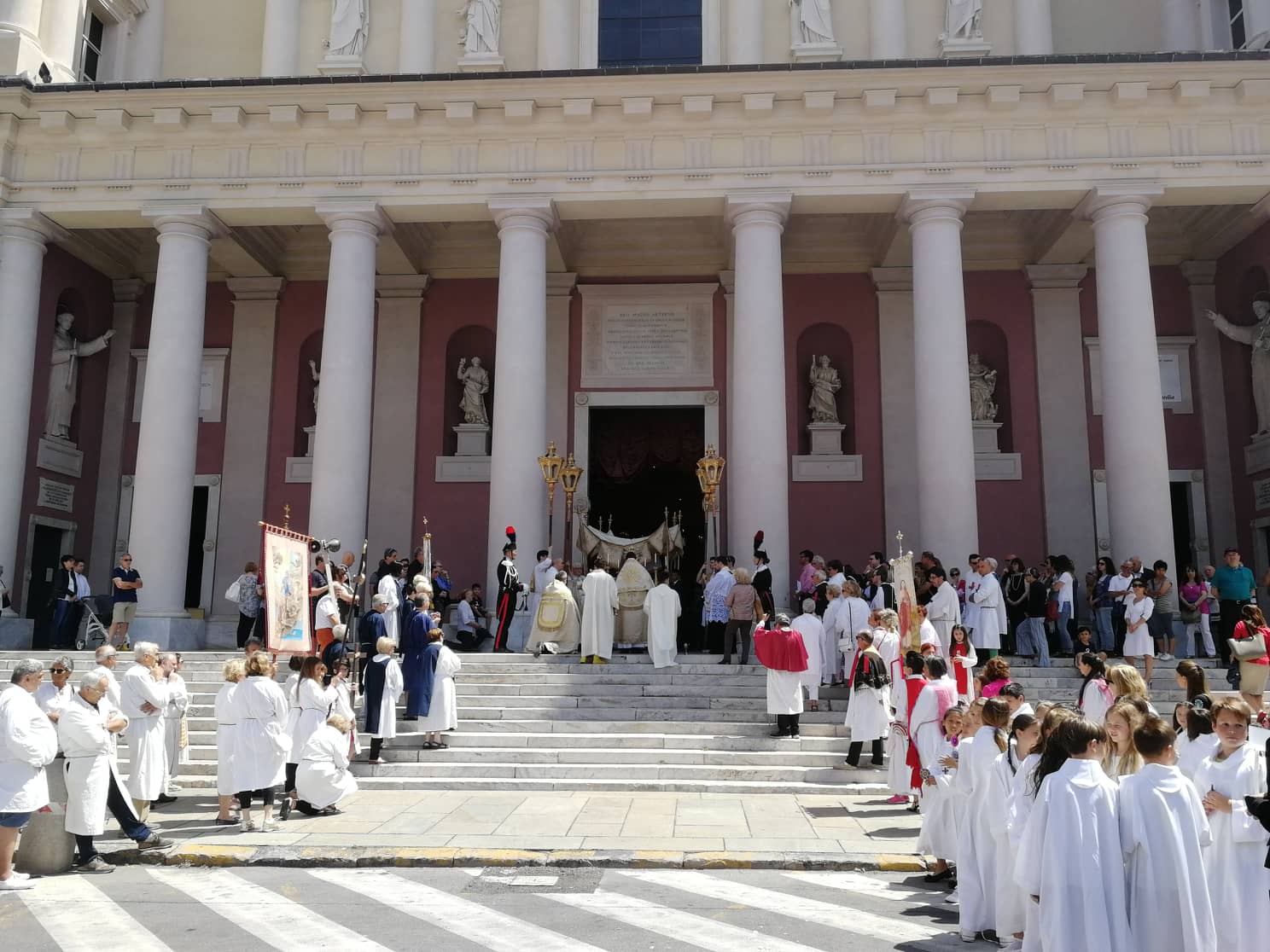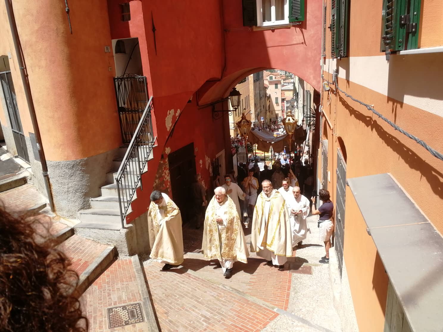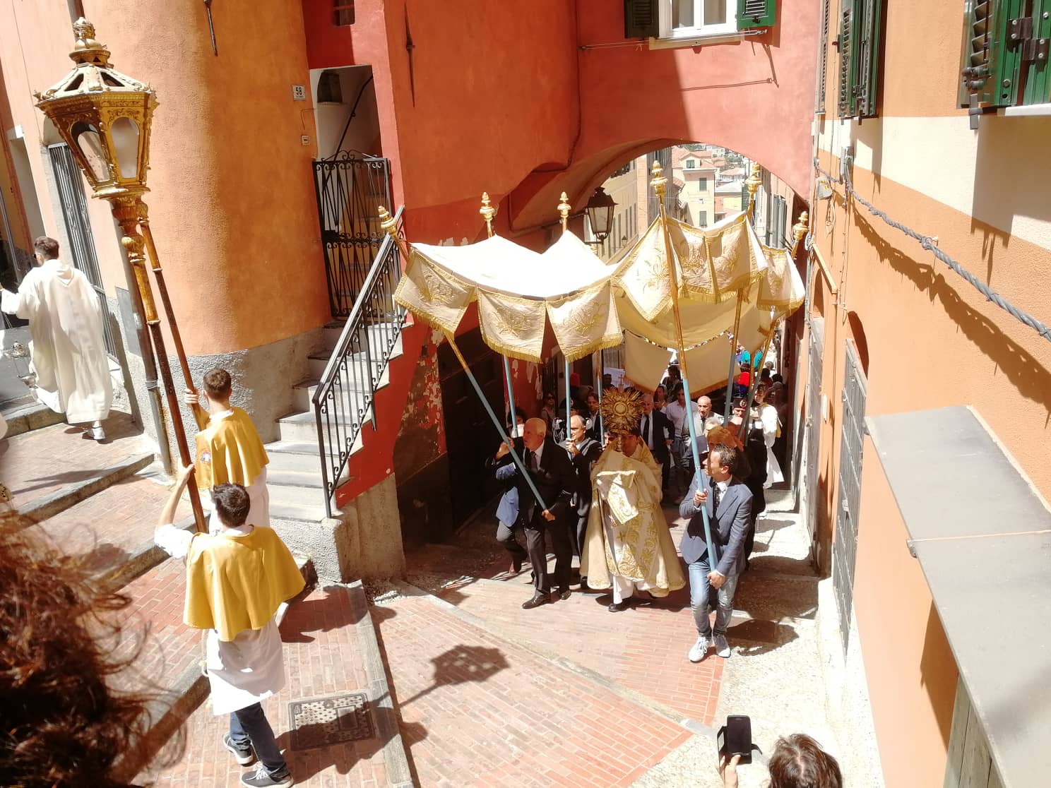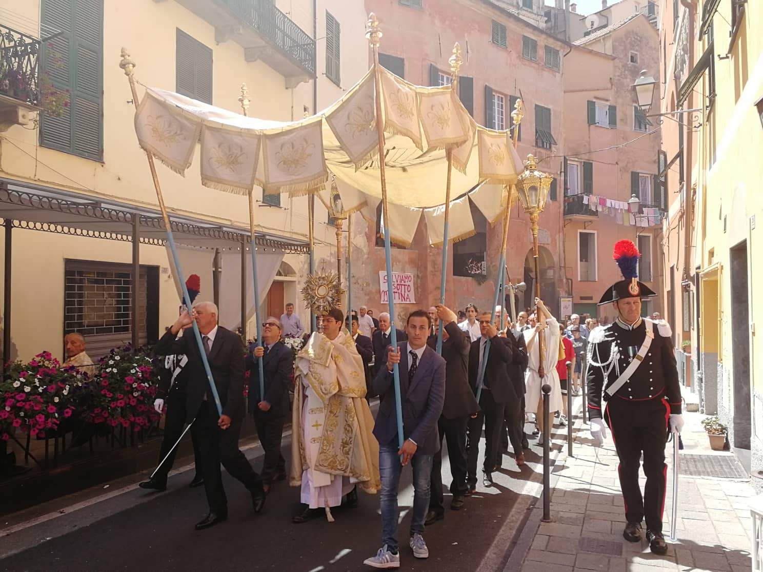 E’ stata celebrata oggi, domenica 3 giugno, in Duomo gremito la “solennità del Corpus Domini”. La messa è stata presieduta dal Parroco Don Lucio Fabris coadiuvato da altri parroci dell’imperiese. Al termine della Messa si è snodata la processione per le vie di Porto Maurizio, con la tradizionale infiorata che ha avuto luogo in via Carducci.