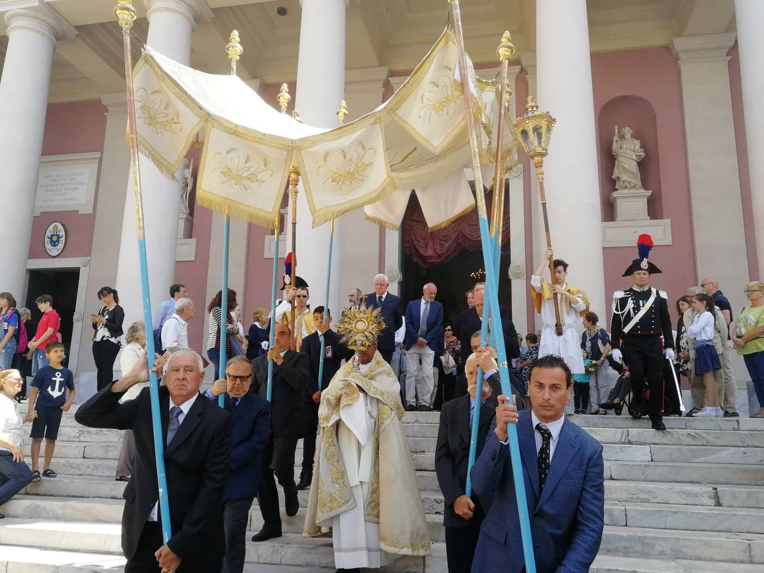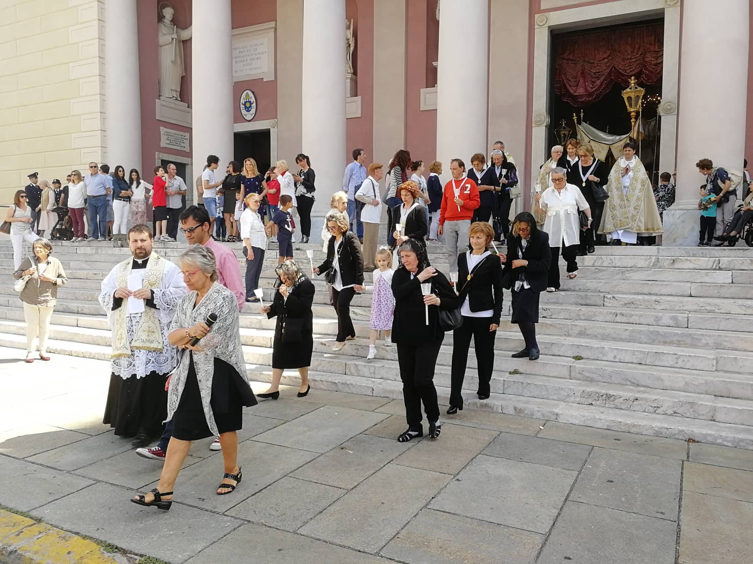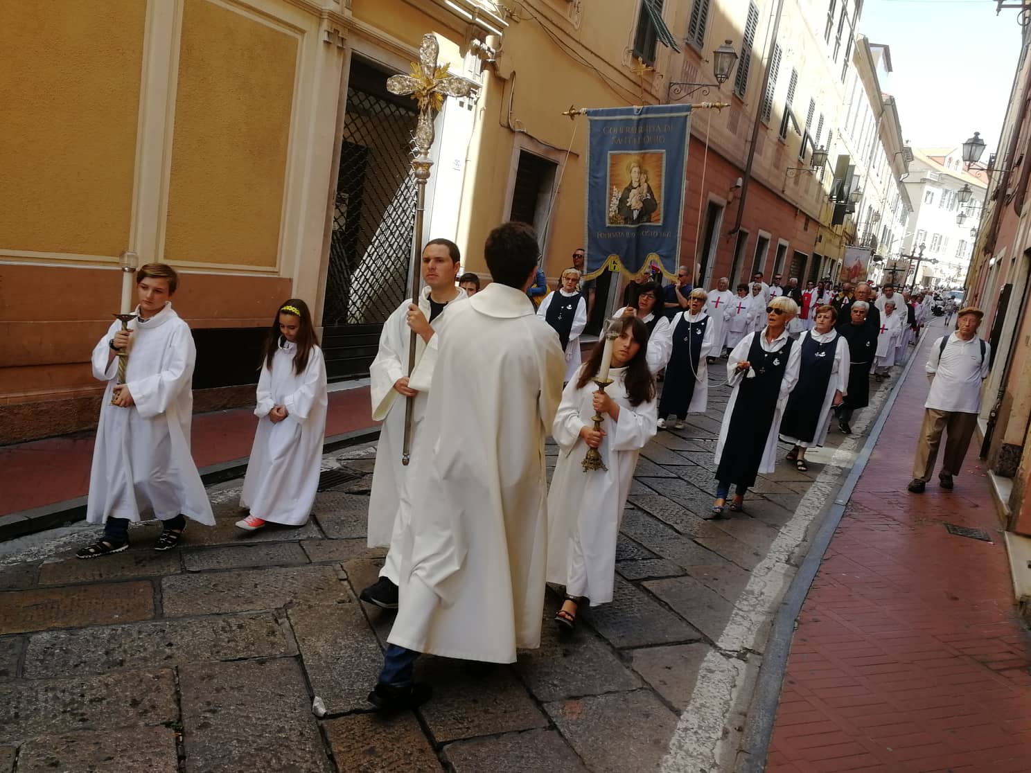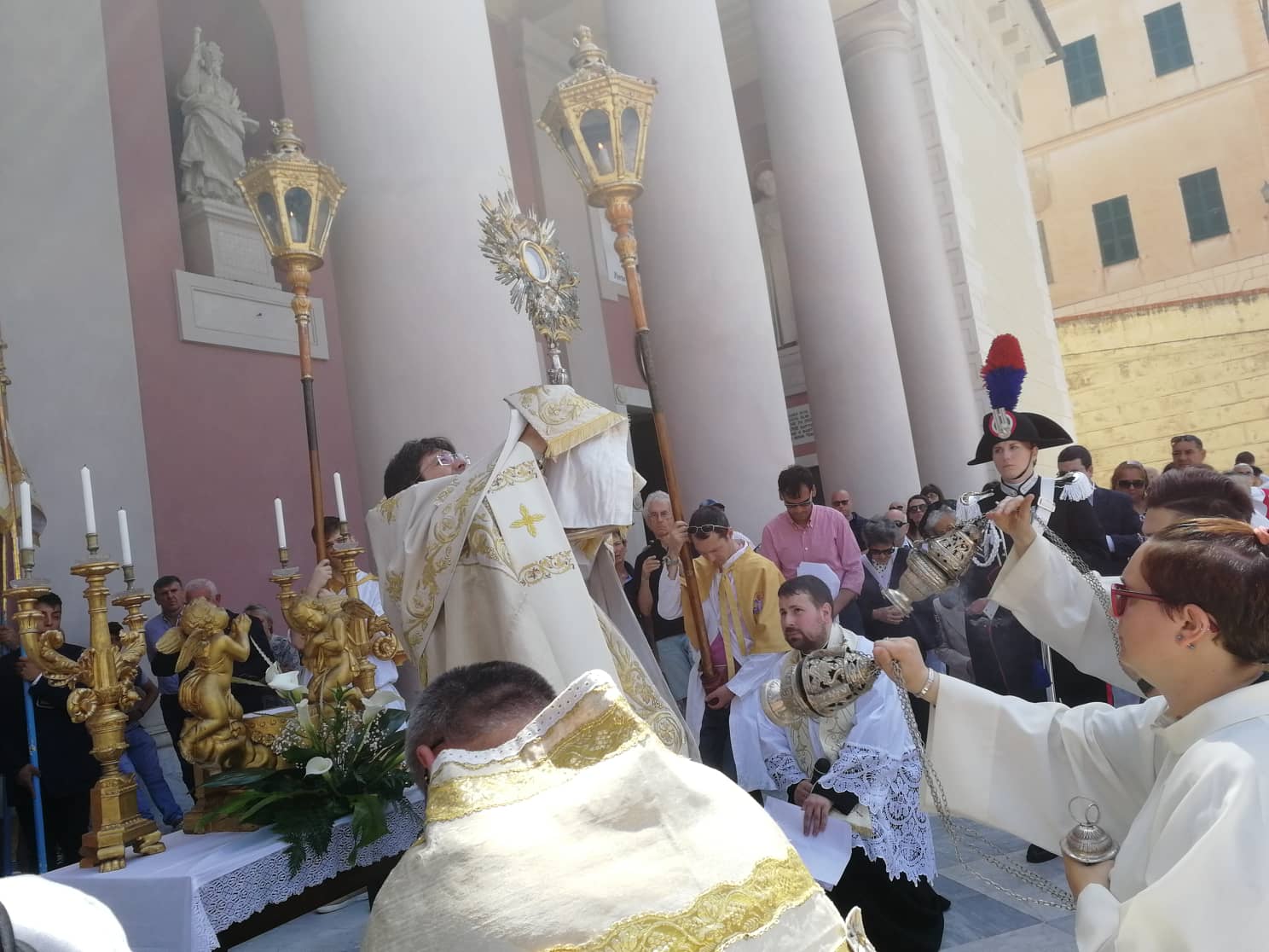 E’ stata celebrata oggi, domenica 3 giugno, in Duomo gremito la “solennità del Corpus Domini”. La messa è stata presieduta dal Parroco Don Lucio Fabris coadiuvato da altri parroci dell’imperiese. Al termine della Messa si è snodata la processione per le vie di Porto Maurizio, con la tradizionale infiorata che ha avuto luogo in via Carducci.