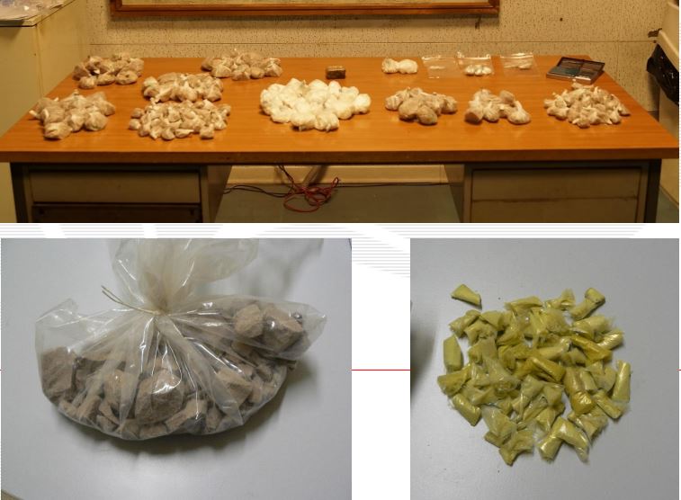 - a Ventimiglia è stato rinvenuto un ulteriore veicolo a bordo del quale sono stati trovati 1.8 kg di eroina e 572 grammi di cocaina;