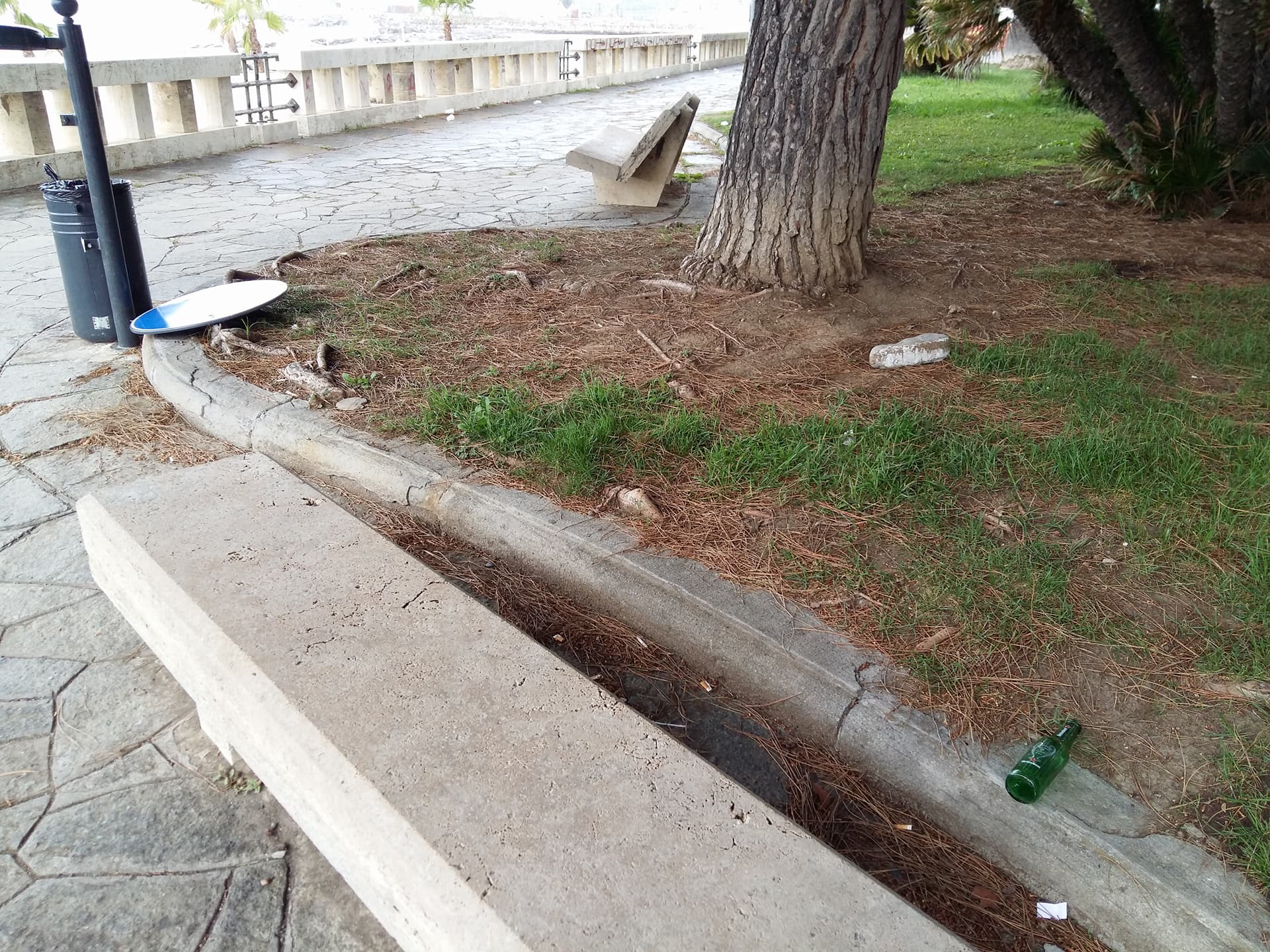 Non si tratta dell’unica segnalazione pervenuta alla redazione di ImperiaPost. Commercianti e abitanti, infatti, denunciano il fatto che, spesso, a seguito di serate di movida sulla spianata Borgo Peri, vengano ritrovati danneggiamenti all’arredo urbano e rifiuti sparsi a terra.