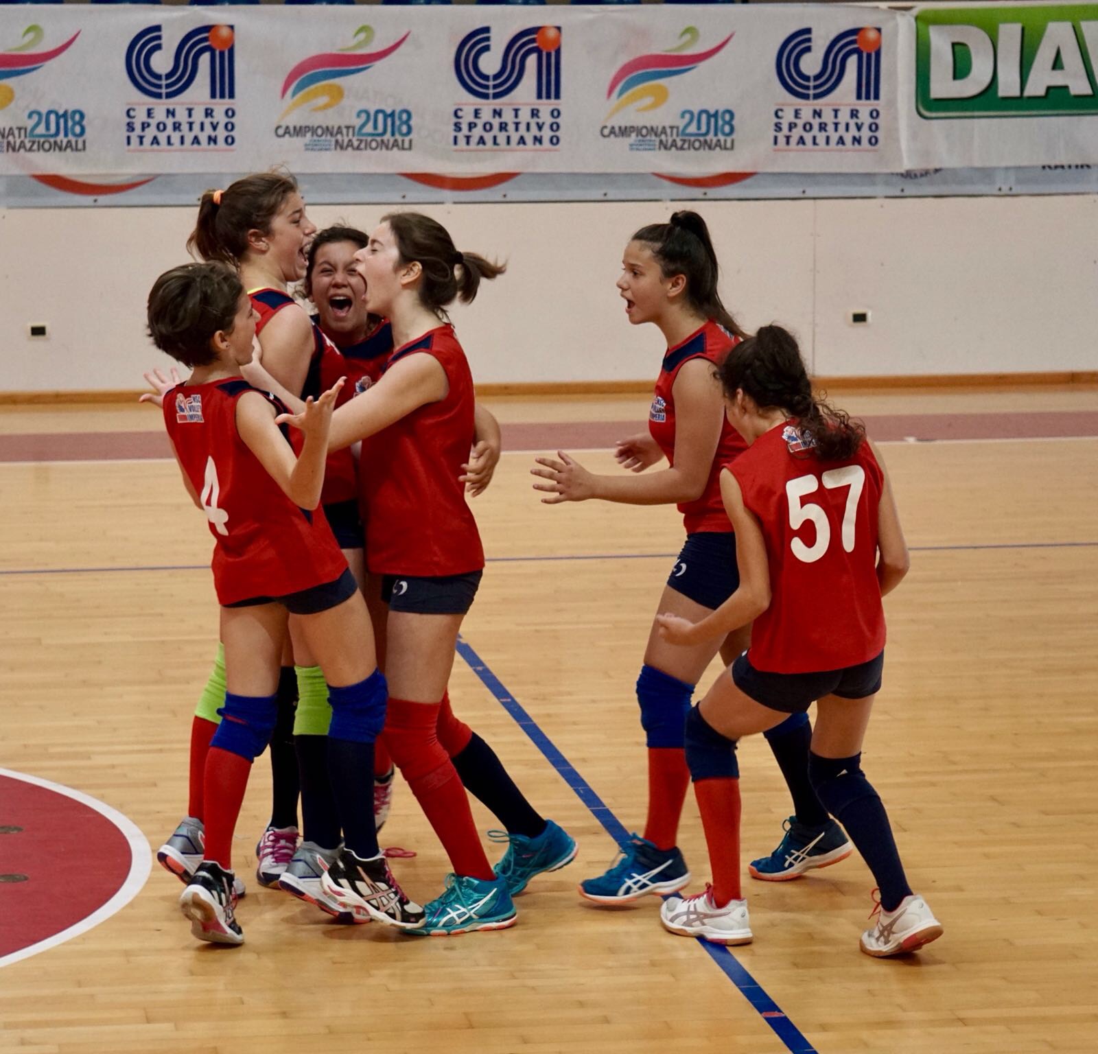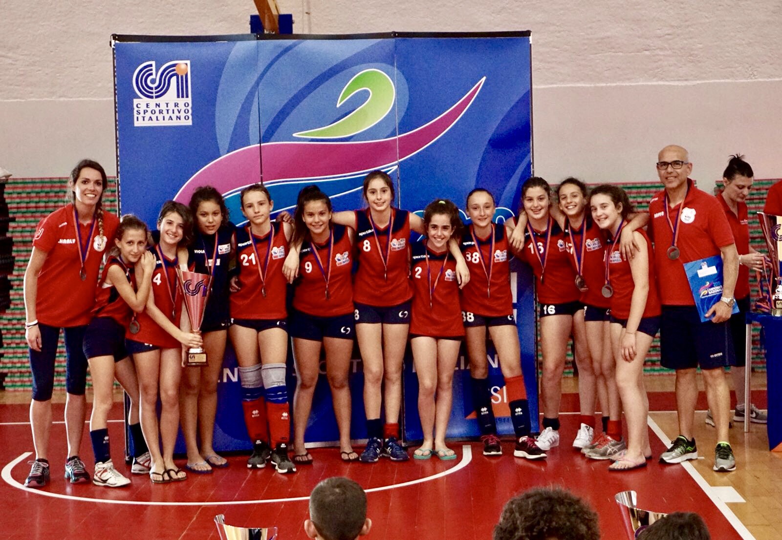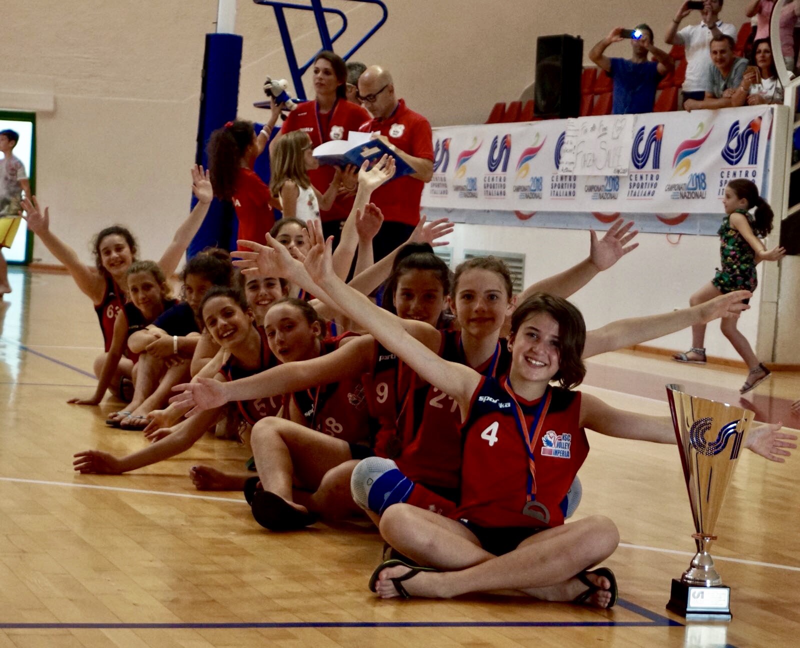 Vice campionesse d’Italia. Allenate abilmente e duramente per tutta la stagione agonistica dai coach Raffaele Sini e Carlotta Silvestri, sono loro: Viola Basso (15), Beatrice Borelli (21), Giulia Chiaravalli (38), Benedetta Coppa (16), Martina Cordella (9), Cristina Dematteis (19), Laura Gonella (63), Luisa Passino (57), Altea Patrucco (8), Alice Piccione (4) ed Eleonora Sini (2), le ragazze dell’NSC Volley Imperia che si portano a casa la coppa delle Vice Campionesse d’Italia nel volley under 12 C.S.I. al termine di una meravigliosa esperienza a Cesenatico dove da mercoledì a domenica si sono disputate le Finali Nazionali.