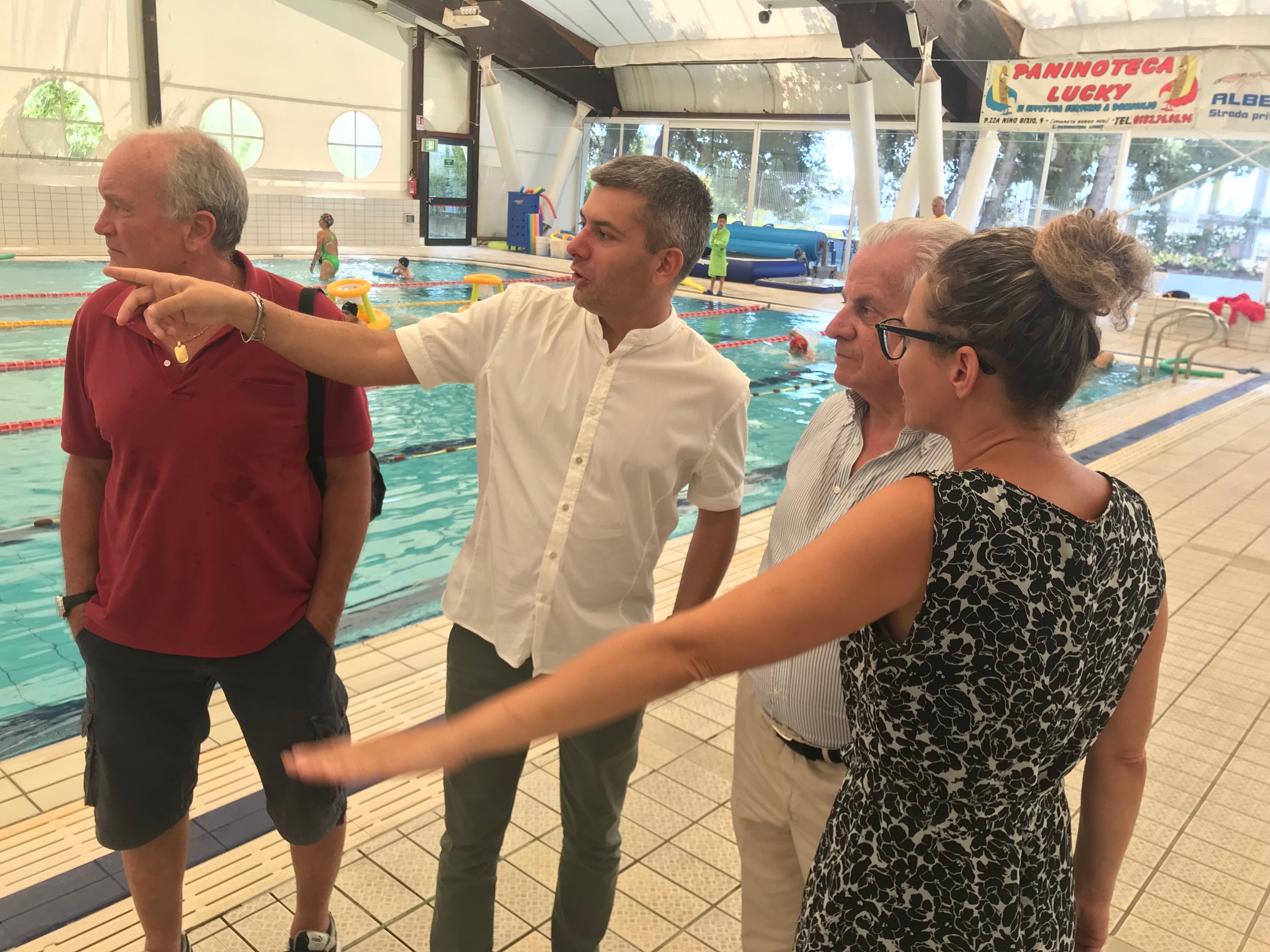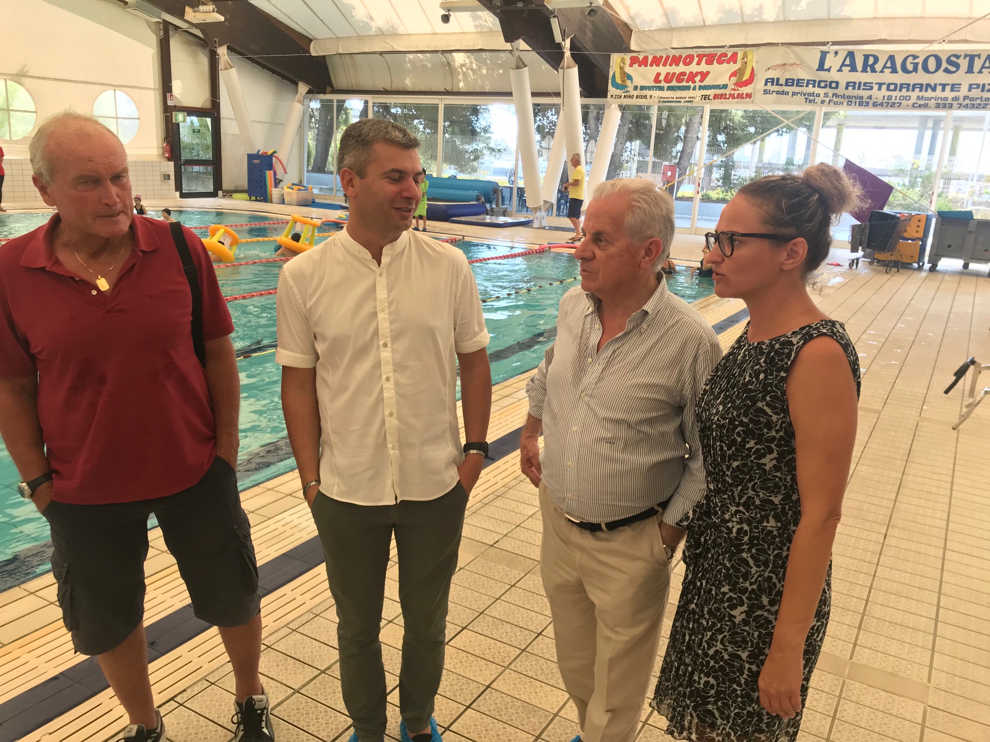 Claudio Scajola questa mattina ha visitato la piscina comunale Felice Cascione. Accompagnato dalla presidente della Rari Nantes, Francesca Leone e dai dirigenti della società, ha visitato lo stabilimento sportivo facendo un sopralluogo in tutti gli spazi.