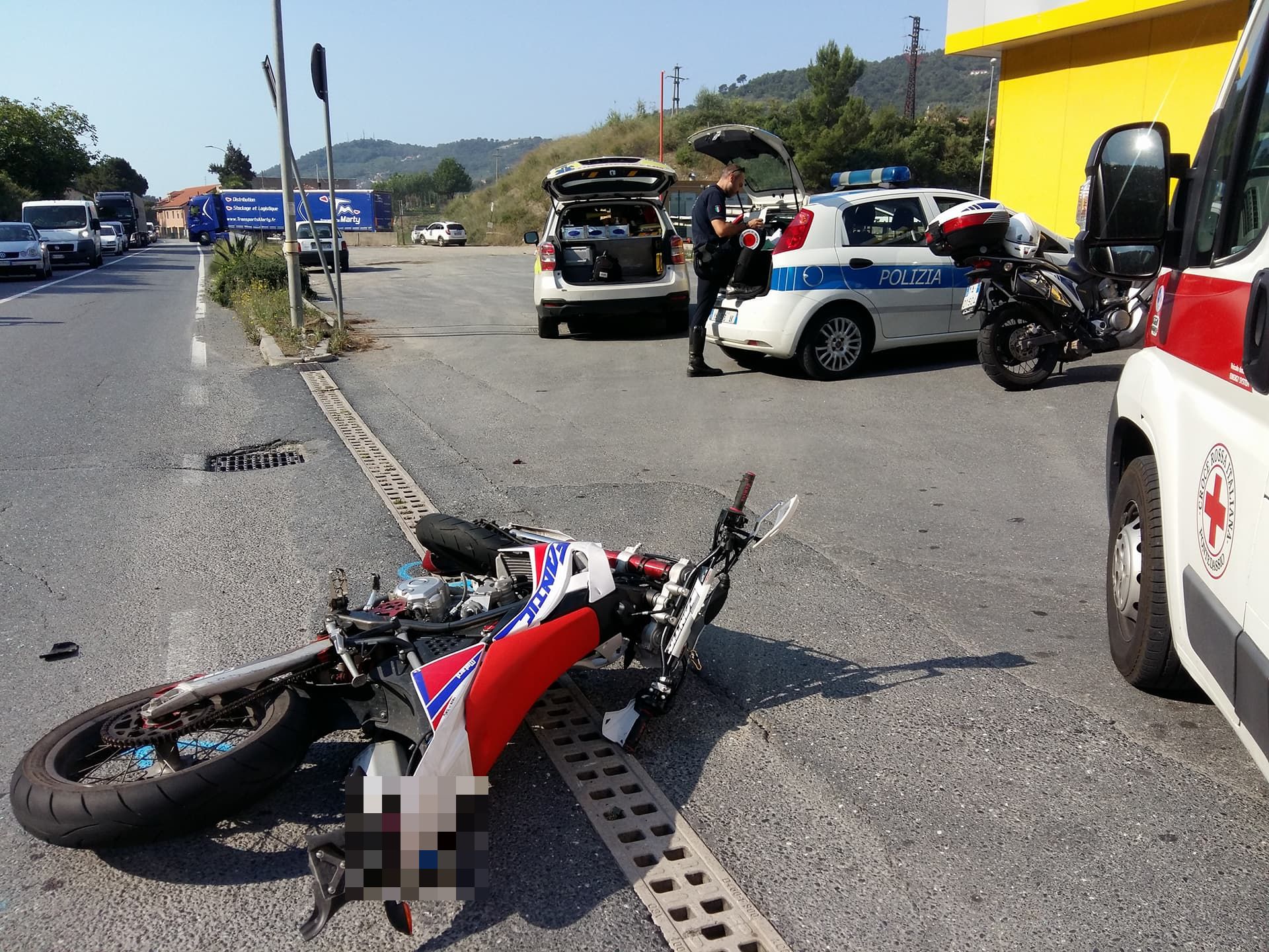 Verso le 9 di stamattina, un’auto condotta da un 77enne, intenta a immettersi in strada uscendo dal distributore di benzina, si è scontrata con una moto da cross, condotta da un 18enne, proveniente da monte e diretta verso Imperia. L’impatto è stato molto violento e il giovane è sbalzato a terra.