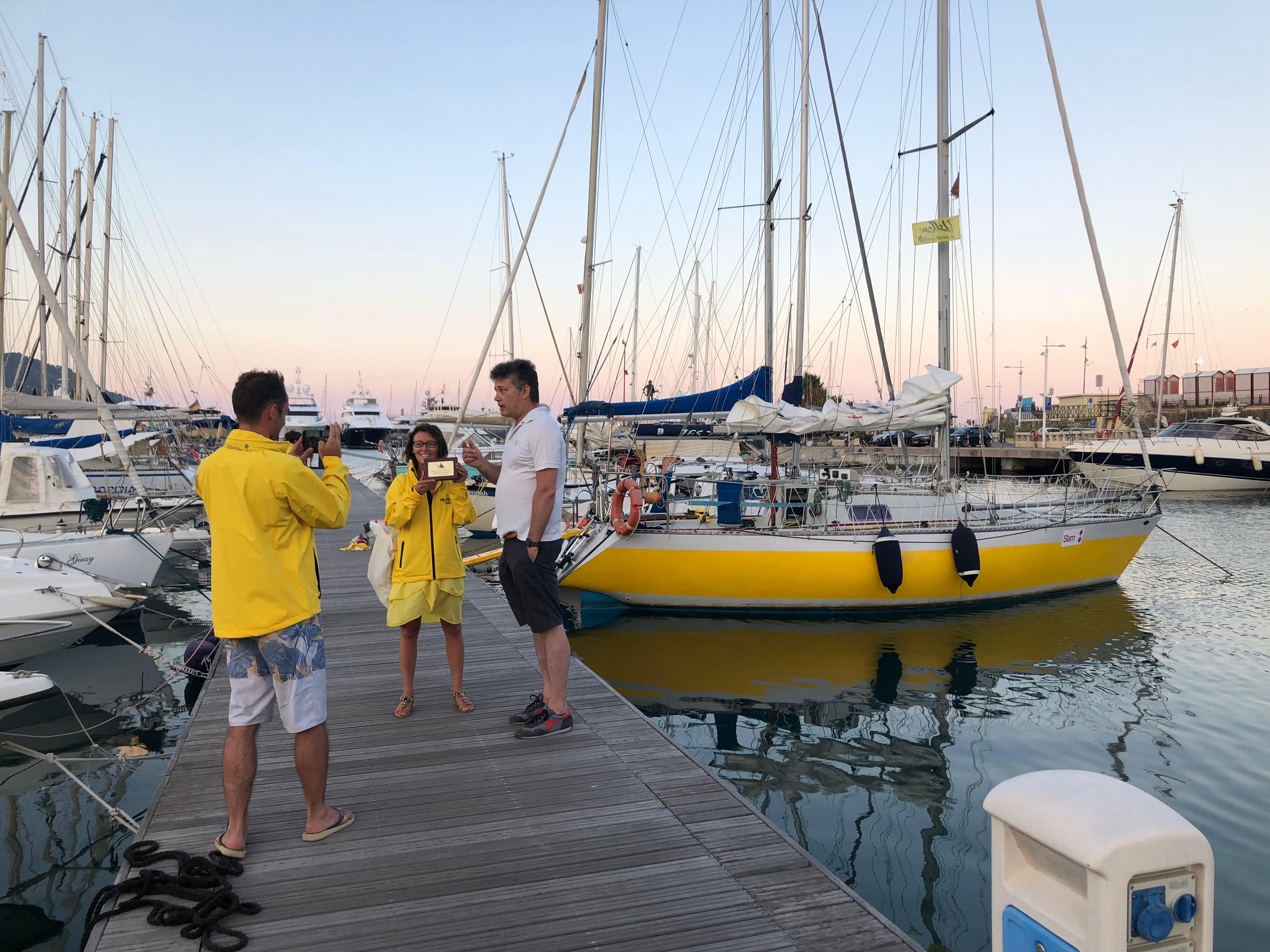 A ricordo di questo momento e come simbolo per la mostra temporanea che verrà allestita in occasione di Zone Portuaires 2018, il Vice Presidente Savini ha donato il crest del Raduno al capitano di Yellow con l’augurio di rivedersi presto, magari proprio alle Vele d’Epoca di Imperia a settembre.
