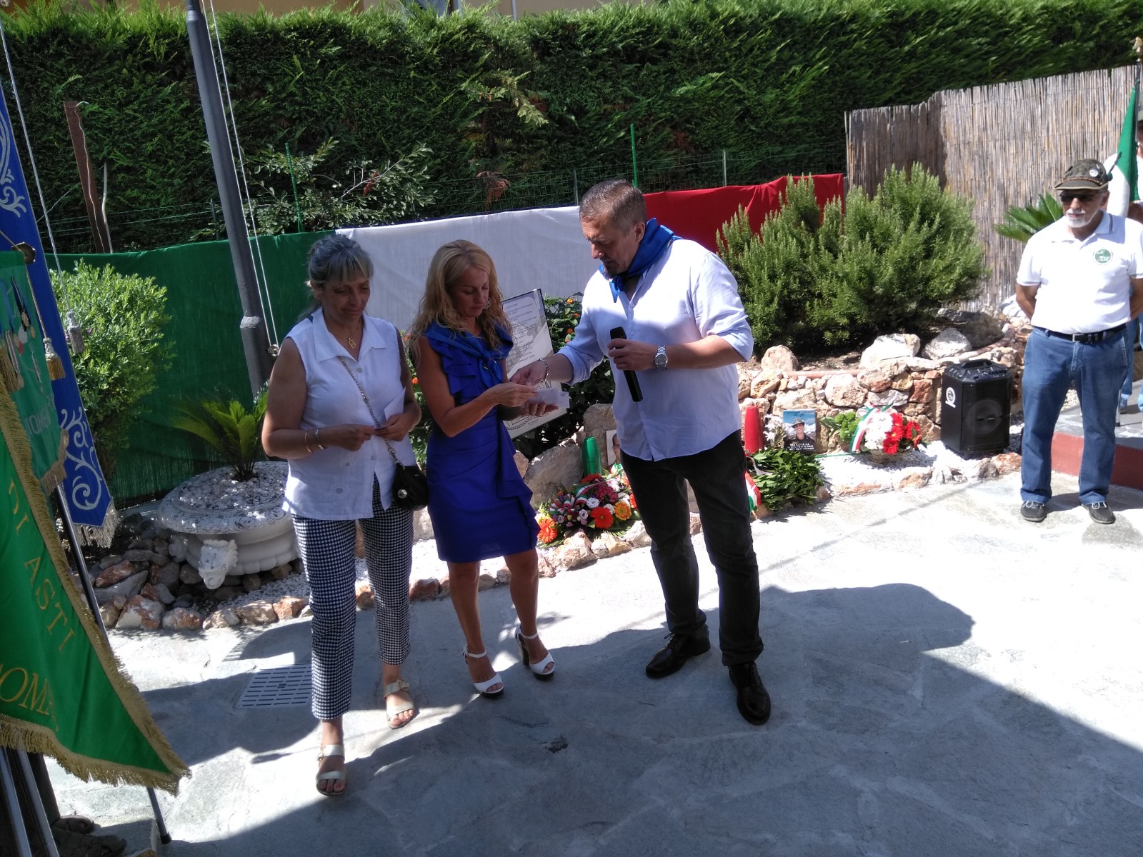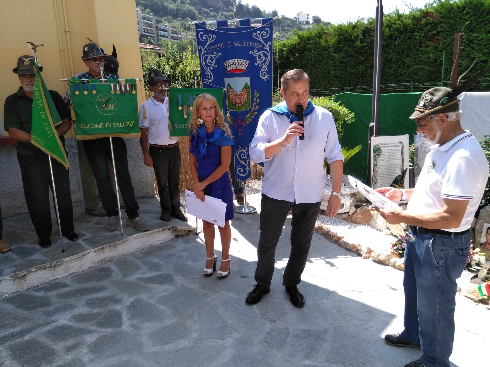 La cerimonia organizzata durante il raduno Alpino degli Ottoluoghi si e svolta, alla presenza, oltre dei quadri completi dell’Associazione Alpini Provinciale, di numerosi Sindaci e autorità militari, ed e stata officiata dal Presidente Provinciale Francesco Verrando, coadiuvato dalla Sig.ra Francesca Savova e dal Capo sezione ANA Vallecrosia Giuseppe Turone.