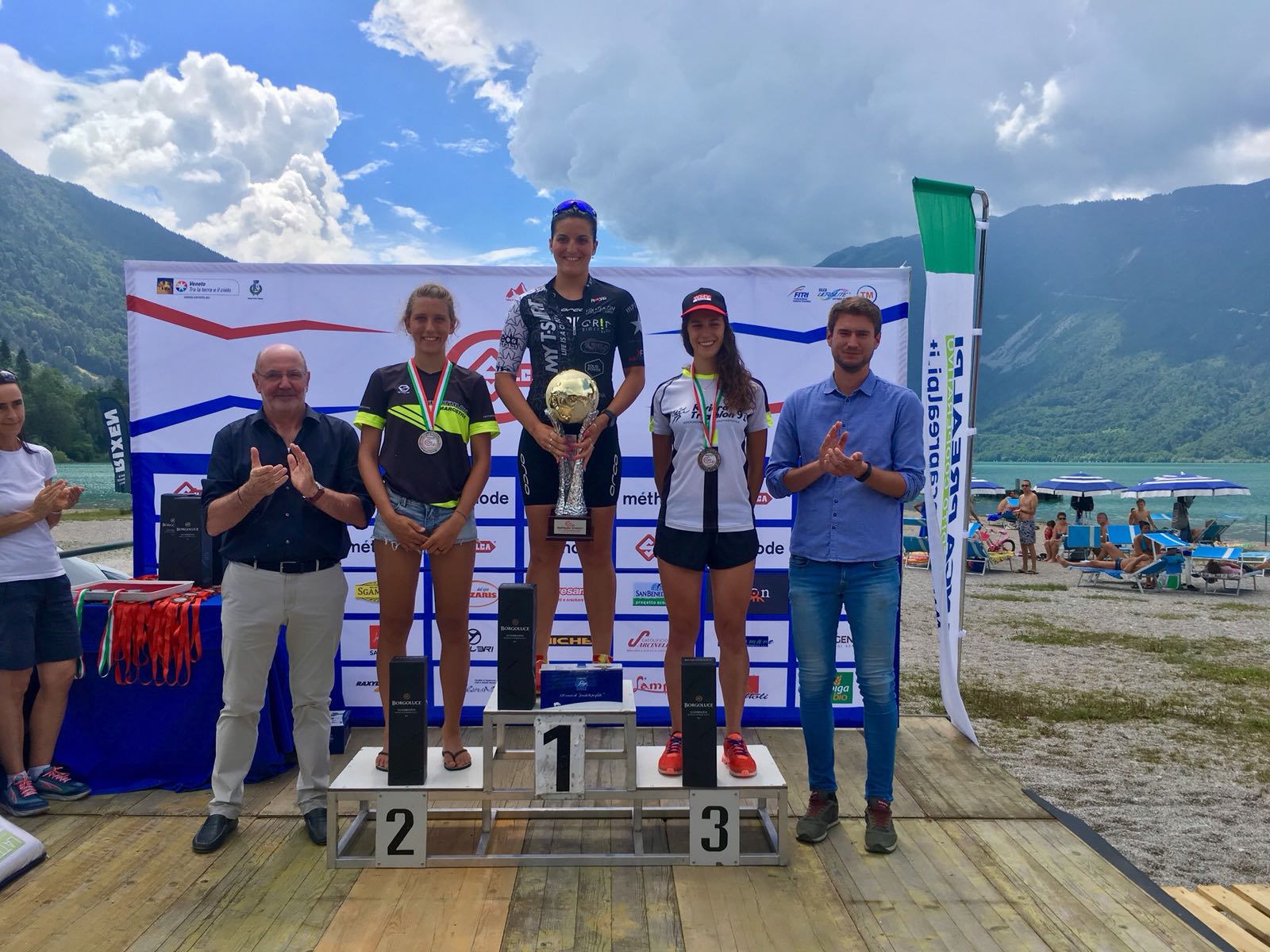 Vittoria Bergamini ha imposto il proprio ritmo nella frazione natatoria uscendo nel gruppo delle prime con le quotata Spimi e Crestani. La Spimi ha, poi, fatto valere le proprie doti ciclistiche prendendo le redini della gara e distaccando le dirette inseguitrici di oltre 1′ al termine della seconda frazione. Le dirette inseguitrici erano, appunto, Crestani e Bergamini. La Crestani inizia la frazione podistica con l’intento di recuperare sulla Spimi; Bergamini non al 100% cerca di limitare i danni. Al traguardo risulta vittoriosa Sharon Spimi del TTR con il tempo di 1h02’58, seconda Francesca Crestani con il tempo di 1h03’49”, terza la nostra Vittoria Bergamini in 1h06’22”.