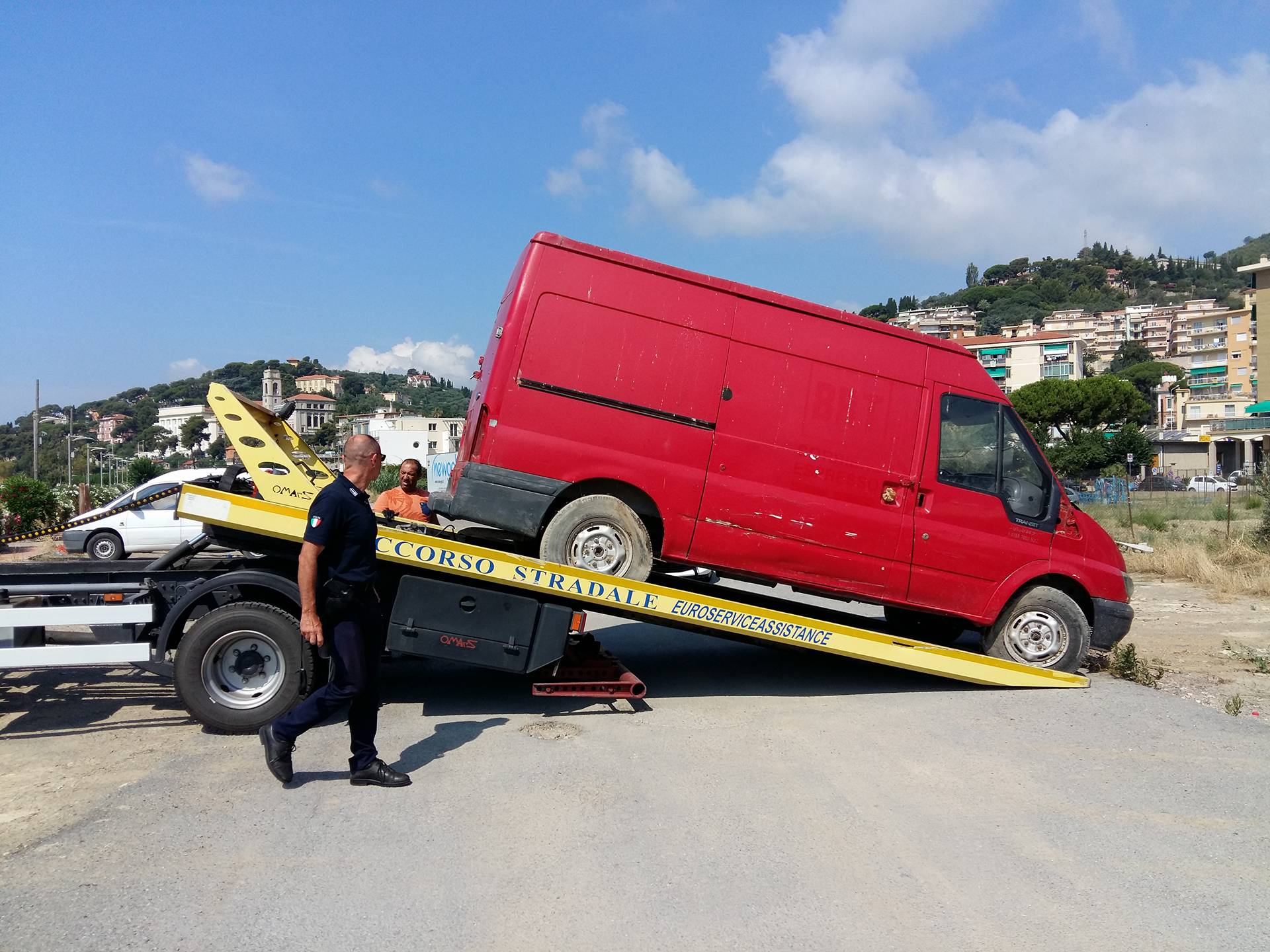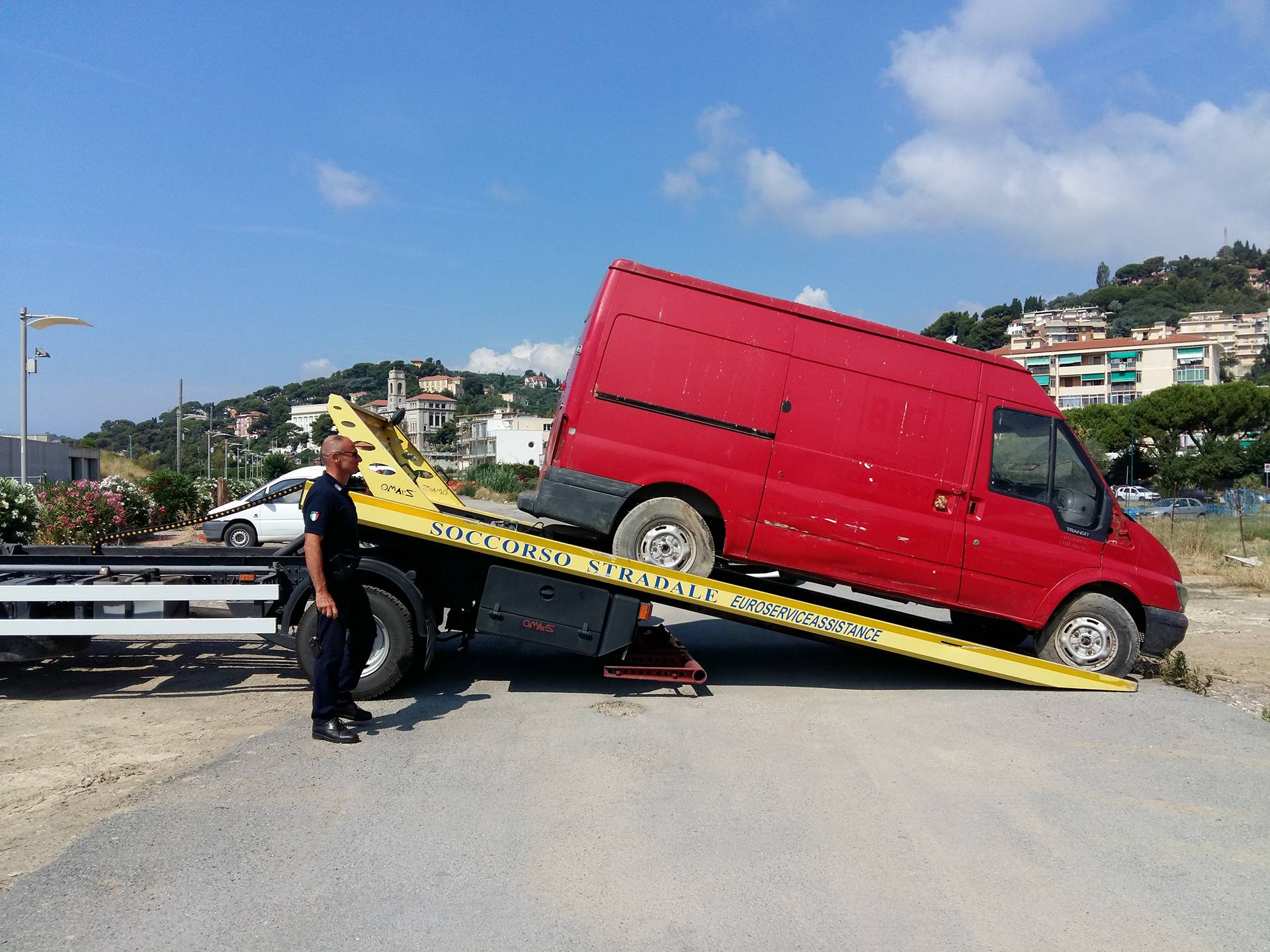 Si tratta un intervento che rientra nella più vasta operazione, voluta dall’assessore Antonio Gagliano e dal Comandante Aldo Bergaminelli, di rimozione dei veicoli abbandonati sul territorio imperiese , che il comune di Imperia ha affidato alla ditta Tedesco di Torino.