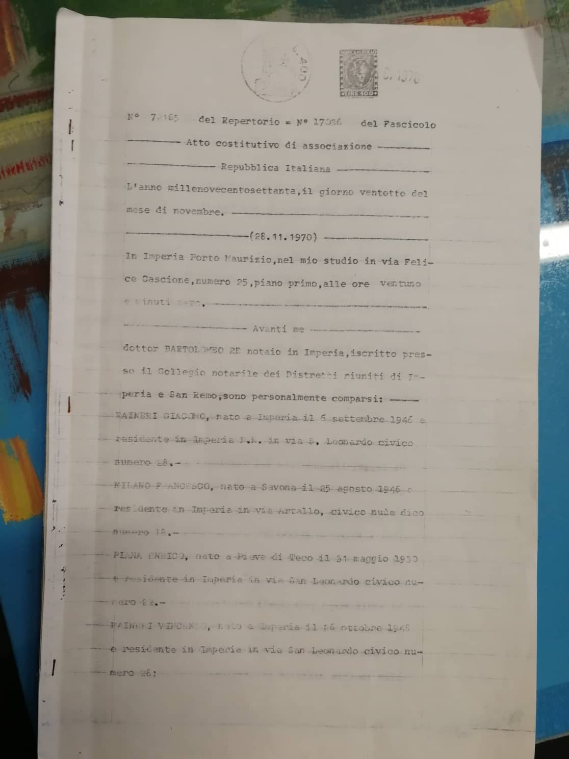 Quest’anno ricorrono i 50 anni e ho lo statuto in mano. Ricordo gli amici che con me, Giacomo Raineri, sottoscrissero lo statuto: Milano Francesco, Piana Enrico, Biancardino Giovanni, Carli Alessandro, Raineri Vincenzo, Graglia Renzo. Altri amici, che non avevano 21 anni ma che contribuirono alla fondazione: Giacomo Tafuni, Risso Claudio, Gatti Mauro, Amoretti Bernardo. Questo gruppo di amici che faceva parte della stessa compagnia.