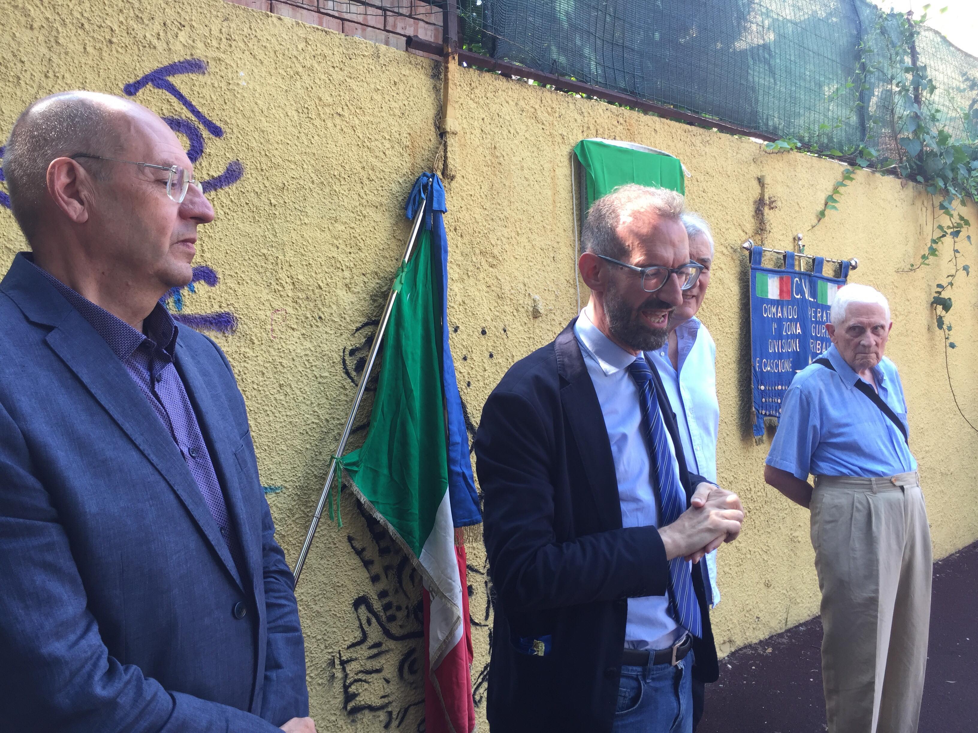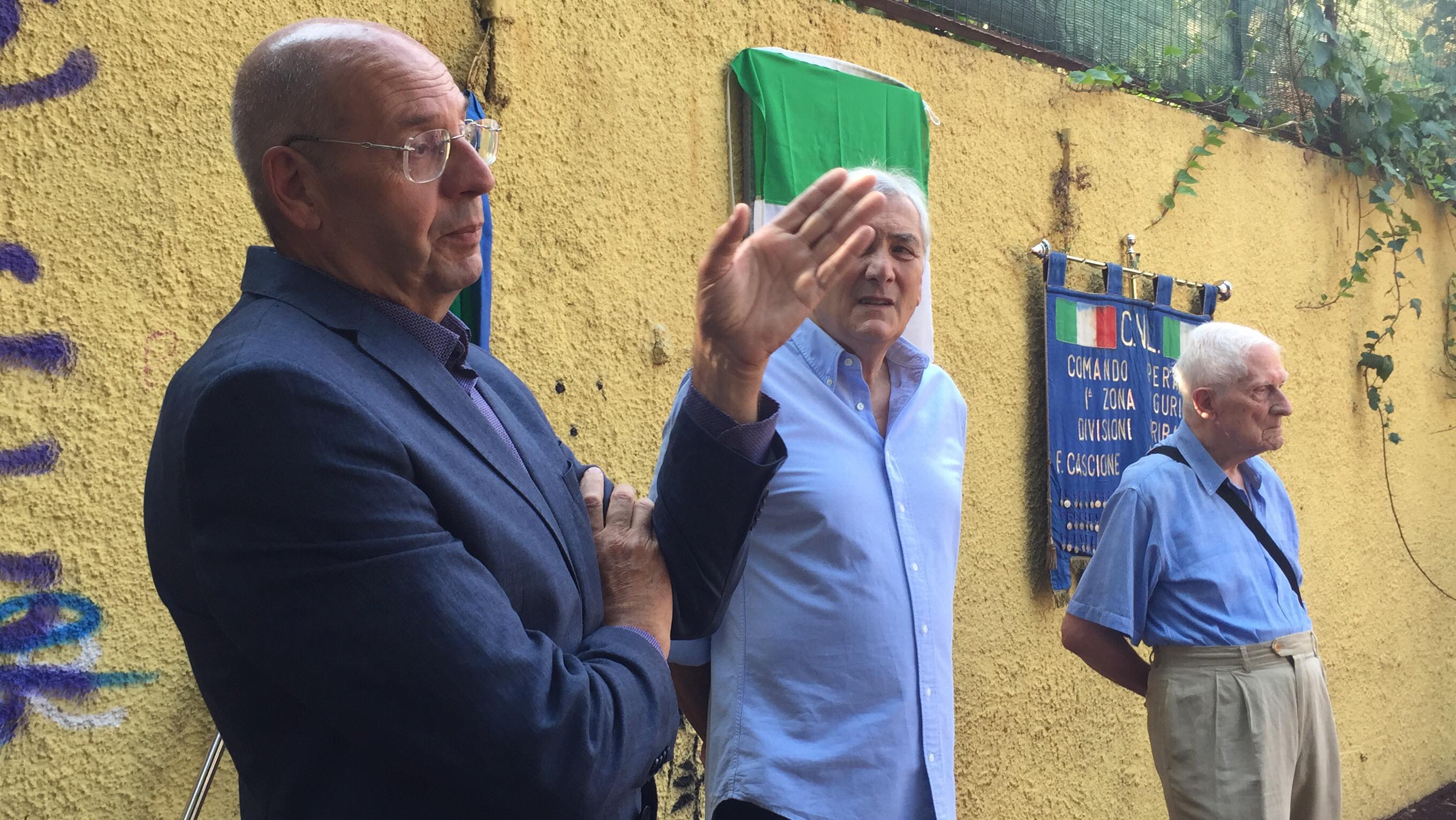 “Questa non è la posa di una lapide, – ha detto Ugo Mela dell’Anpi – è il riposizionamento di una lapide che era stata messa dalla famiglia dell’avv. Acquarone e che stupidi vandali hanno irrimediabilmente danneggiato, non si capisce se per mero vandalismo o se dietro c’è una qualche deriva ideologica ma questo è ininfluente. All’interno dell’Anpi abbiamo detto che bisognava ufficializzare questo evento perché non deve passare sotto traccia, si si deve dimenticare quello che hanno fatto a un simbolo della resistenza e di conseguenza abbiamo ritenuto di dover fare questa piccola manifestazione. Vittorio Bartolomeo Acquarone è stato uno stretto collaboratore di Silvio Bonfante, Cion. Vittorio Acquarone, una figura notevole, di spessore, e l’8 settembre fece la scelta giusta, di quelli che andavano incontro a fame, a fatiche, a freddo ma soprattutto a coloro che hanno messo a repentaglio la loro vita”.