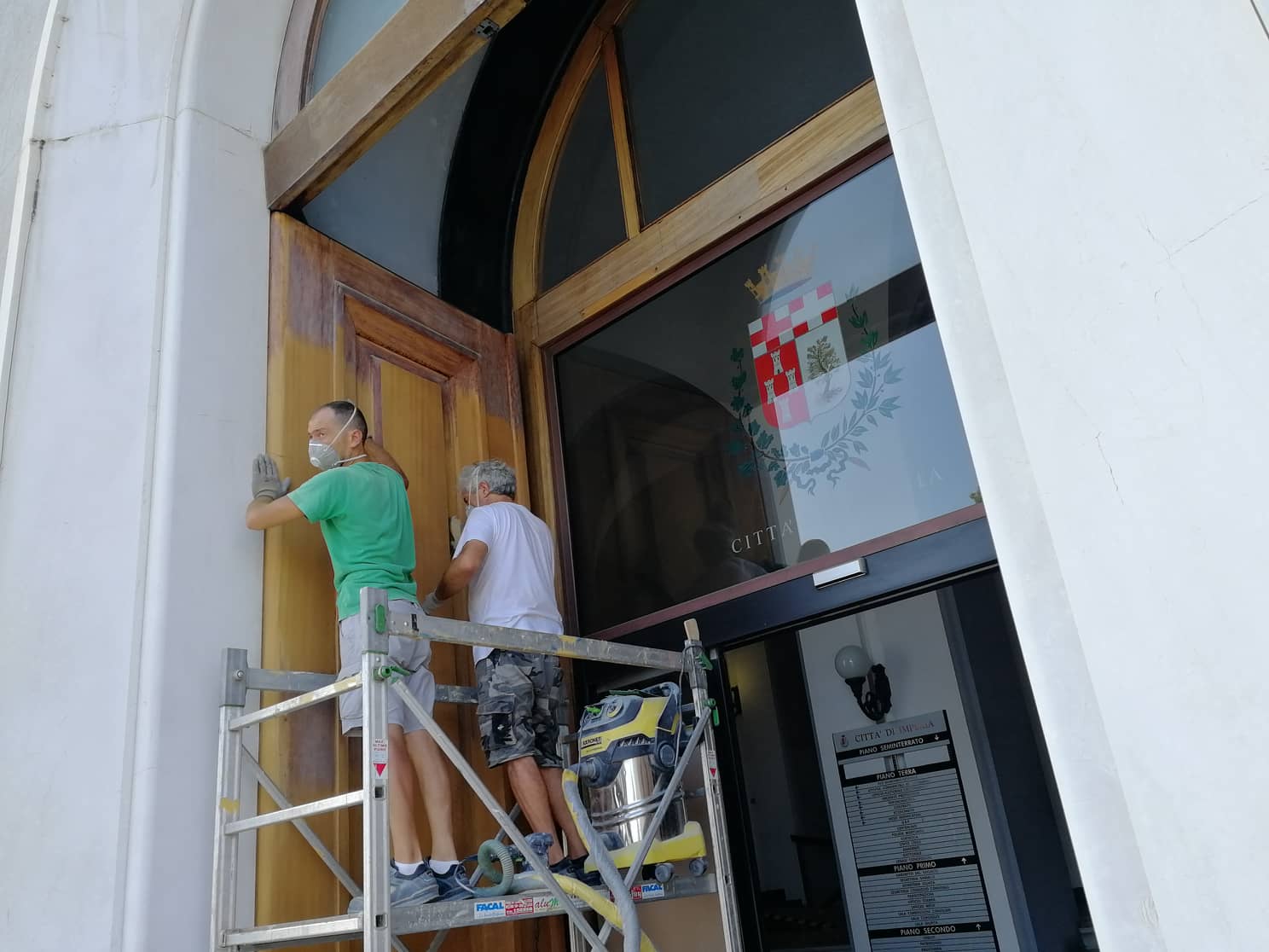 Gli operai della ditta Cantieri di Imperia Yacht Specialist hanno iniziato a carteggiare il portone che, successivamente, verrà riverniciato. Il costo complessivo dell’intervento ammonta a 3.635,60 euro. Il Comune di Imperia, per individuare il miglior candidato per l’affidamento dell’intervento ha richiesto tre preventivi, il migliore dei quali è stato presentato dalla società Cantieri di Imperia.