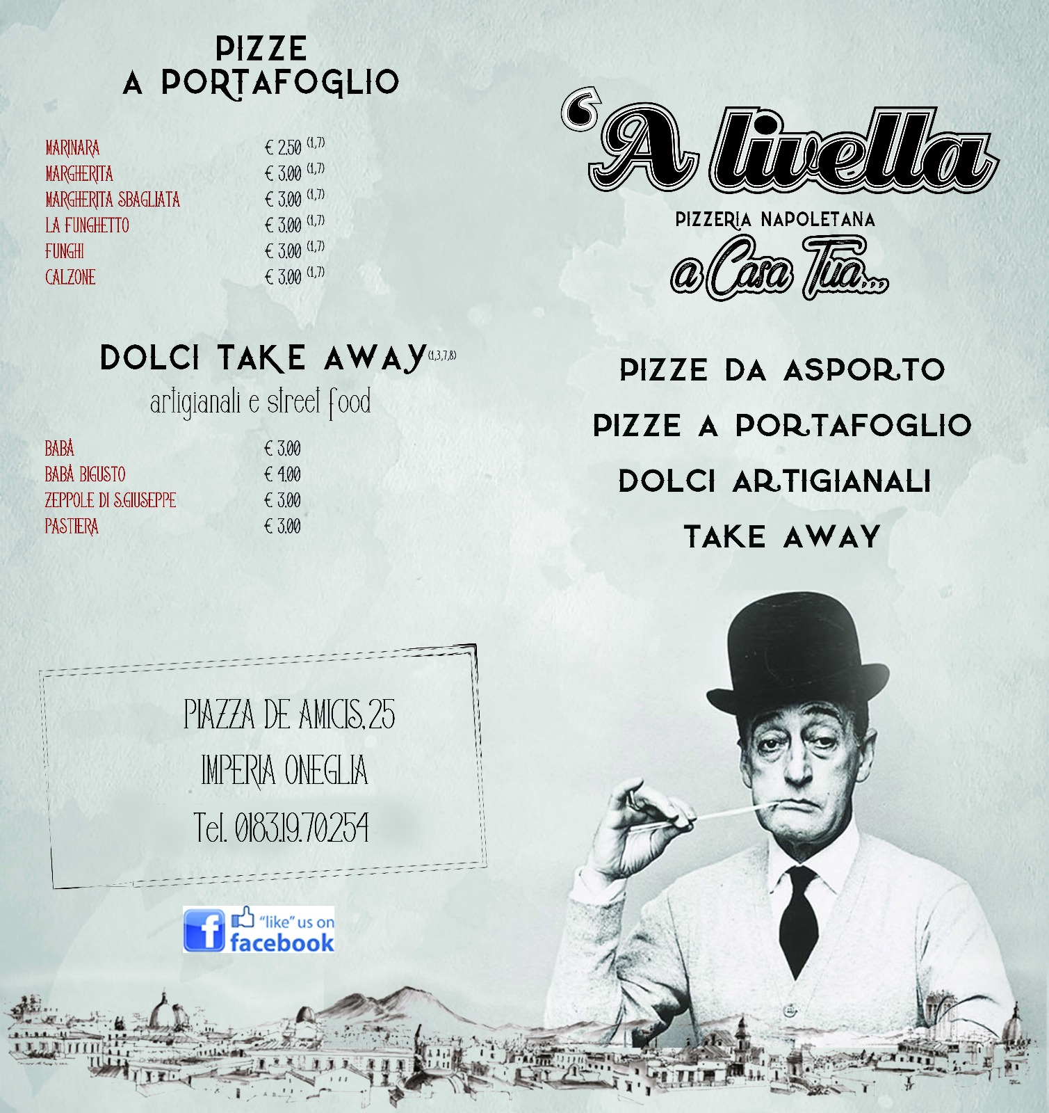 ” ‘A Livella” pizzeria Napoletana “a casa tua” piazza De Amicis 25 Imperia Oneglia orario 12/ 00.00