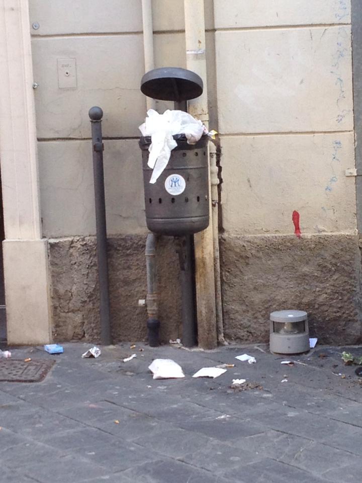 Imperia – “Non è possibile, sono le undici di mattina e i cestini della spazzatura in via Monti, all’angolo con Galleria degli Orti, sono già stracolmi di spazzatura. Non è possibile“.