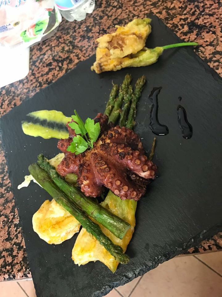 Manuel Arciuolo, chef e titolare del locale, coadiuvato dal pizzaiolo Luca ( Osteria Pizzeria le Macine di Dolcedo) propone sempre varianti di stagione al menù con alcuni piatti fissi: