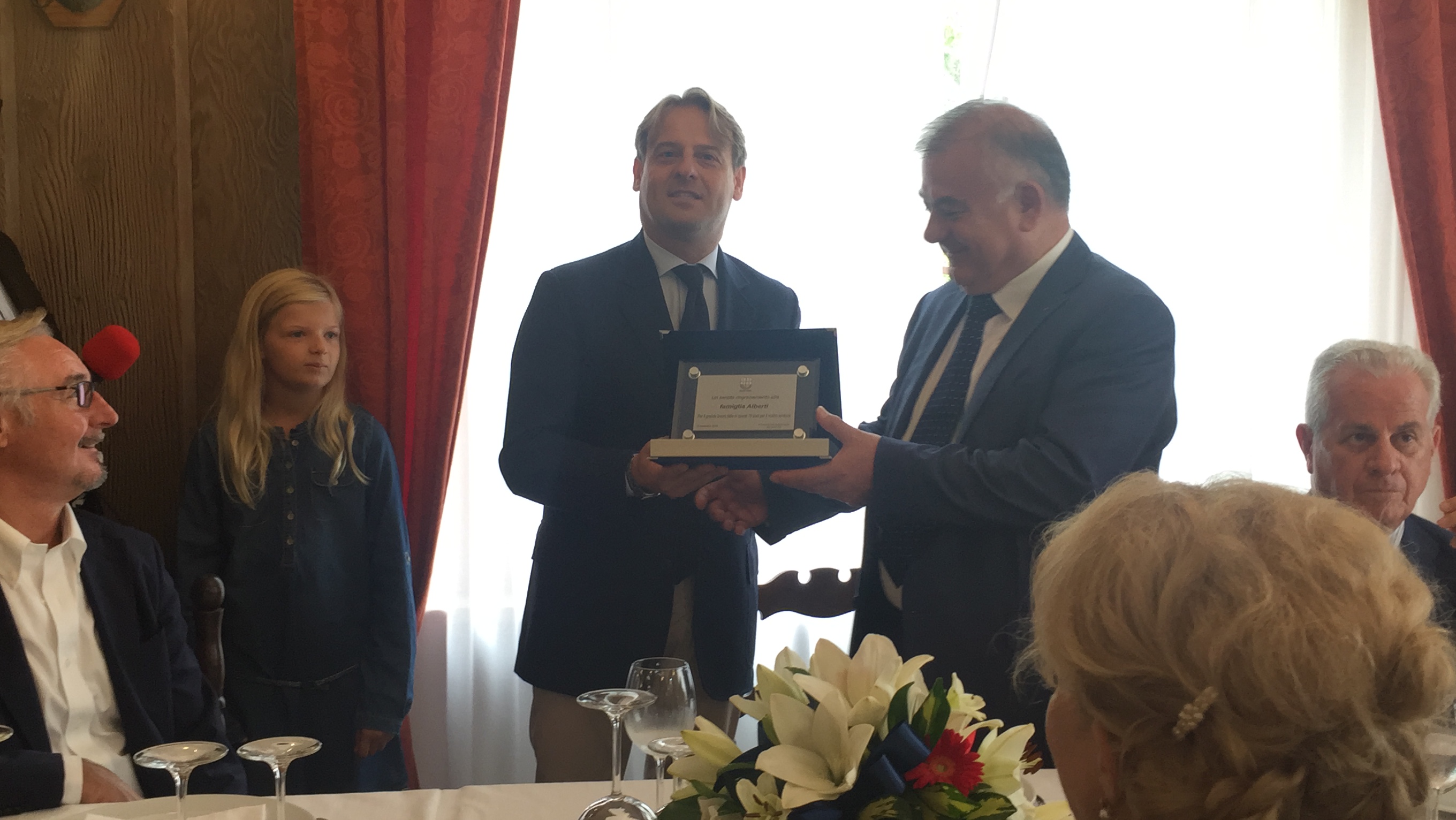 Nel corso dei festeggiamenti, l’assessore Marco Scajola ha consegnato una targa di riconoscimento da parte del presidente della Regione Liguria Giovanni Toti all’azienda Alberti.