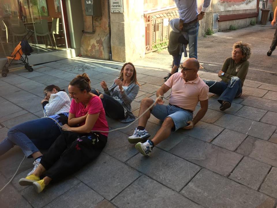 “Tanti genitori ci hanno ringraziato, perché i loro figli non sapevano neanche di cosa si stesse parlando. Addirittura un bambino è andato dal papà e gli ha detto: ‘Ma papà, allora si può giocare anche in strada’. Questo è il nostro miglior risultato, che i bambini abbiano potuto scoprire quello che purtroppo non hanno mai vissuto. Forse siamo noi l’ultima generazione che ha potuto giocare in strada con questo tipo di giochi. Abbiamo giocato a pane e salame, il tiro alla fune, il gioco del fazzoletto, la corsa nei sacchi, il gioco del cucchiaio tenuto in bocca, correndo, con una nocciola dentro. Si sono divertiti tutti tantissimo, anche i genitori. Al tiro alla fune c’è stato un piccolo incidente molto divertente. Quando hanno giocato i genitori, che sono molto più forzuti e molto più agguerriti dei loro bimbi, la fune si è spezzata e cosi da buon video di Paperissima sono finiti tutti gambe all’aria, tra le risate generali”.