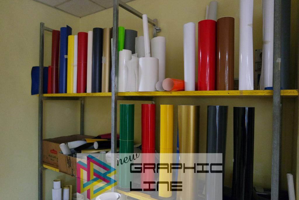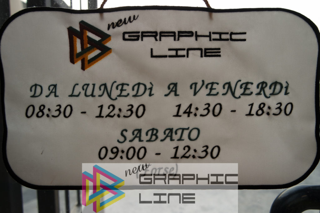 New Graphic Line produce insegne, vetrofanie fisse o mobili (ad esempio per i saldi/promozioni o in occasioni delle festività natalizie), cartellonistica stradale o ad uso interno per indicazioni in azienda.