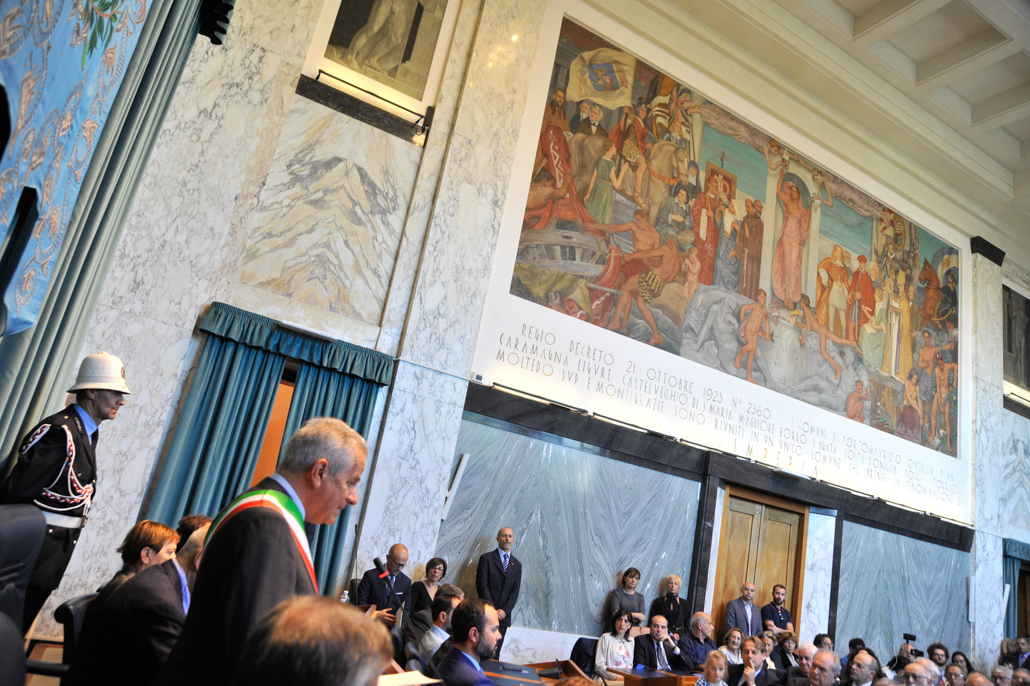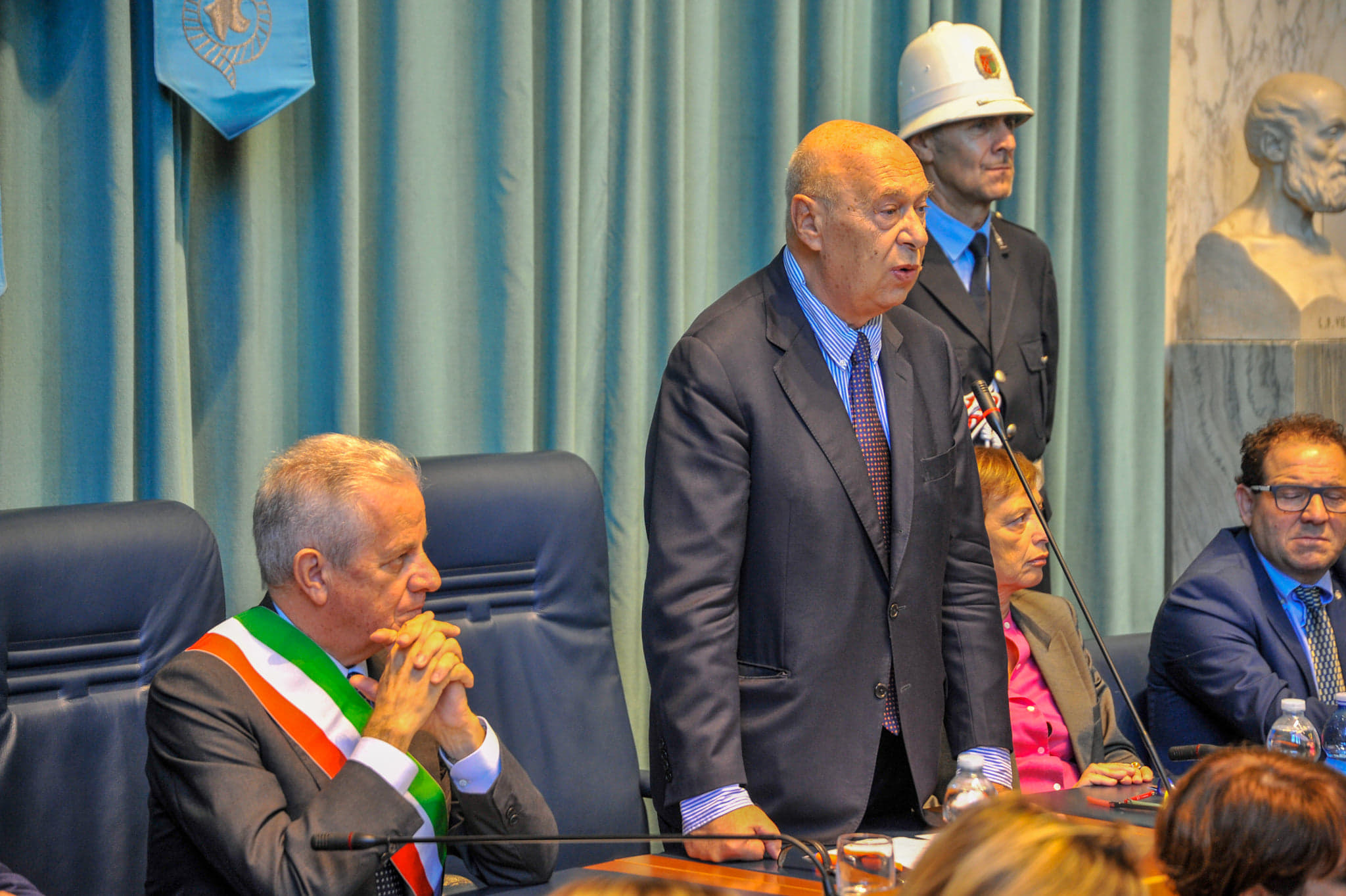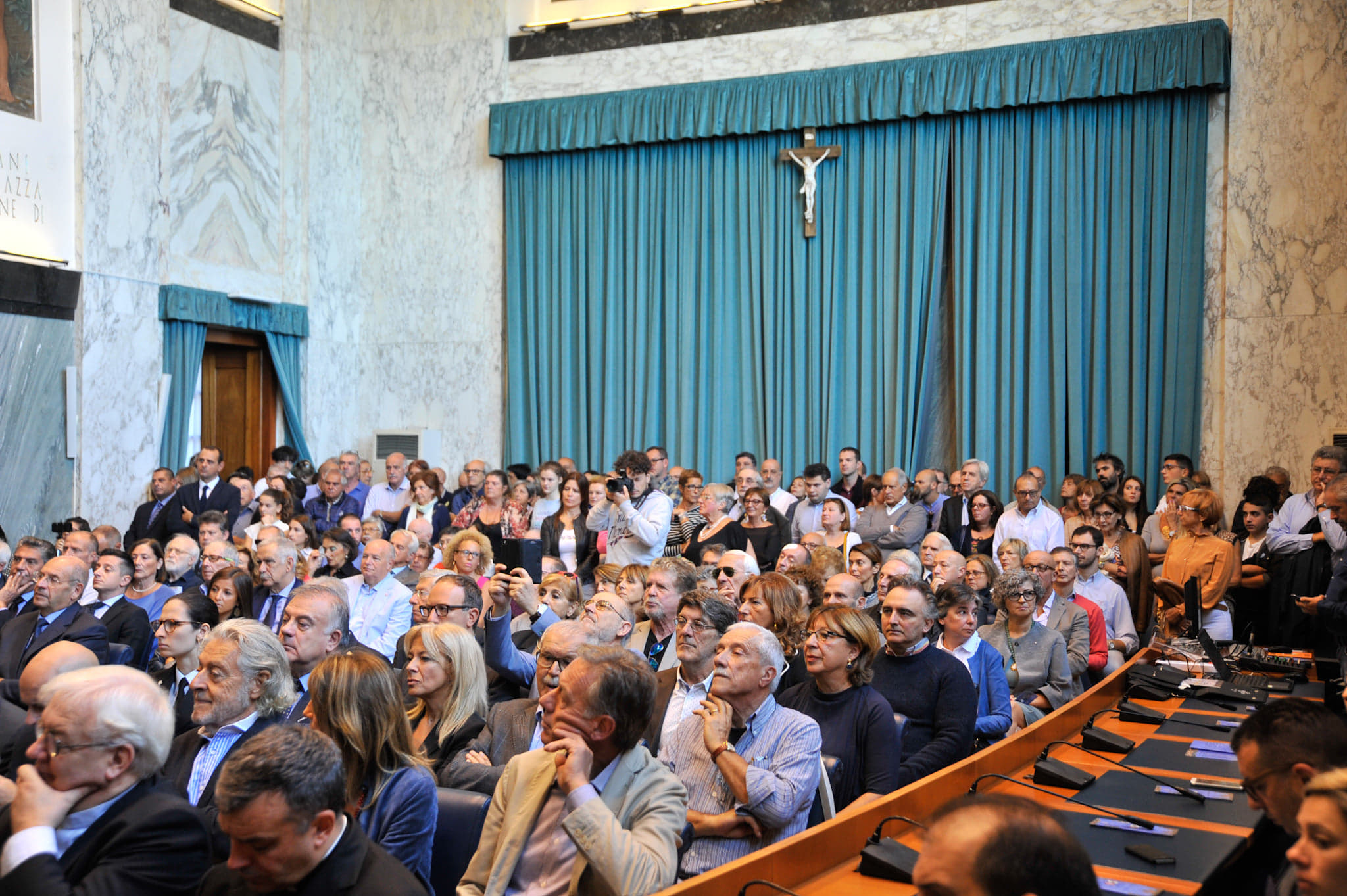 Sala consiliare del Comune di Imperia gremita per la Lectio Magistralis del giornalista Paolo Mieli sulla nascita della città di Imperia.