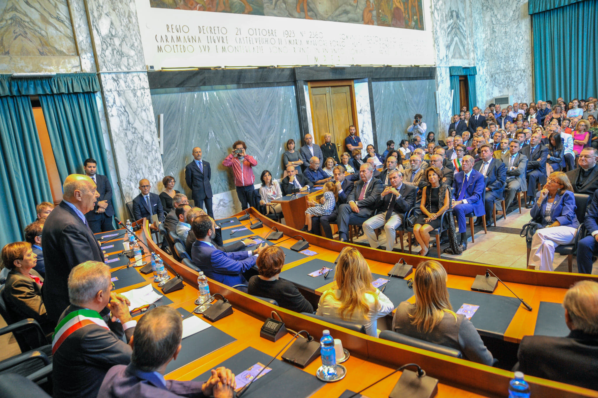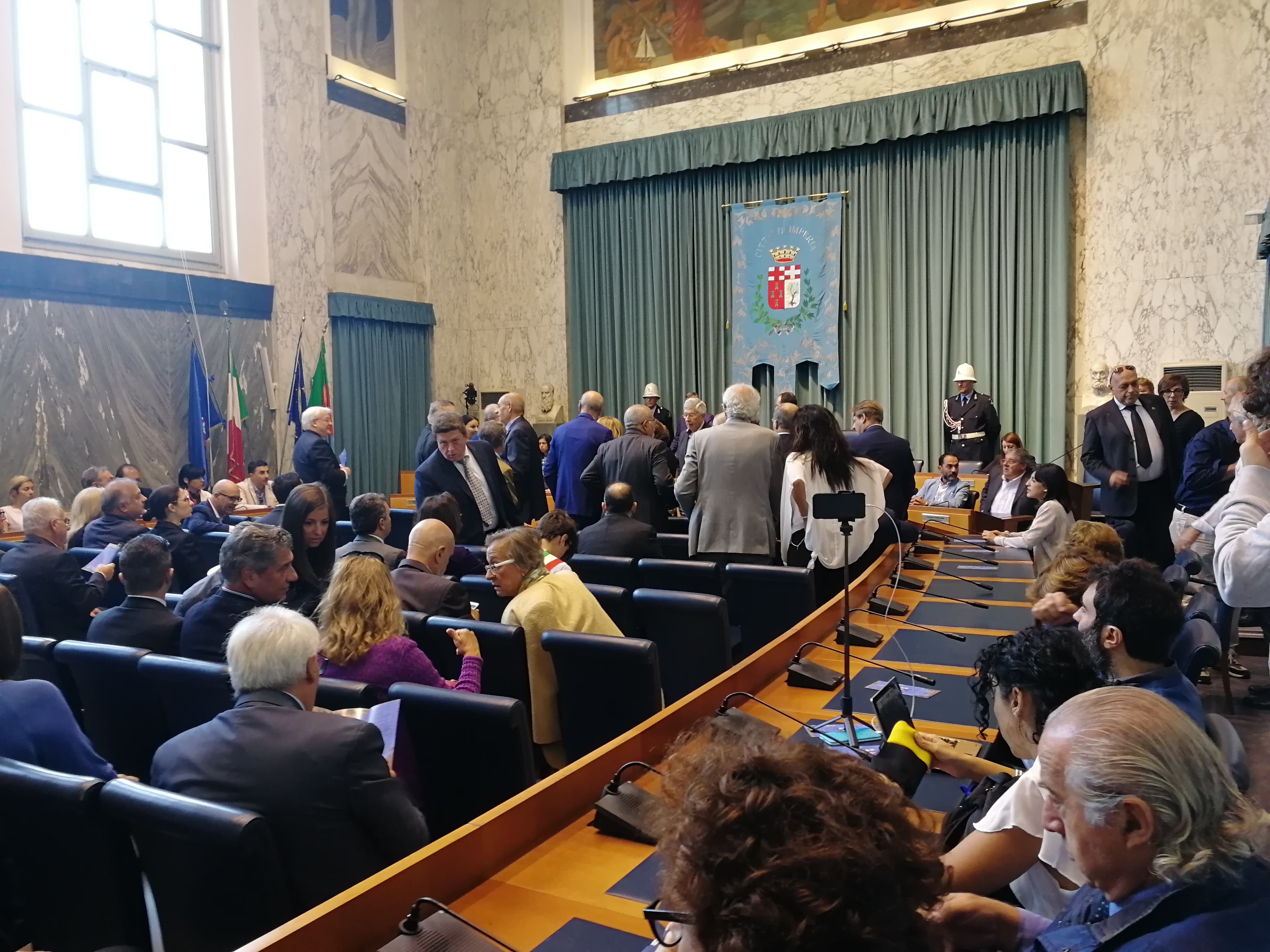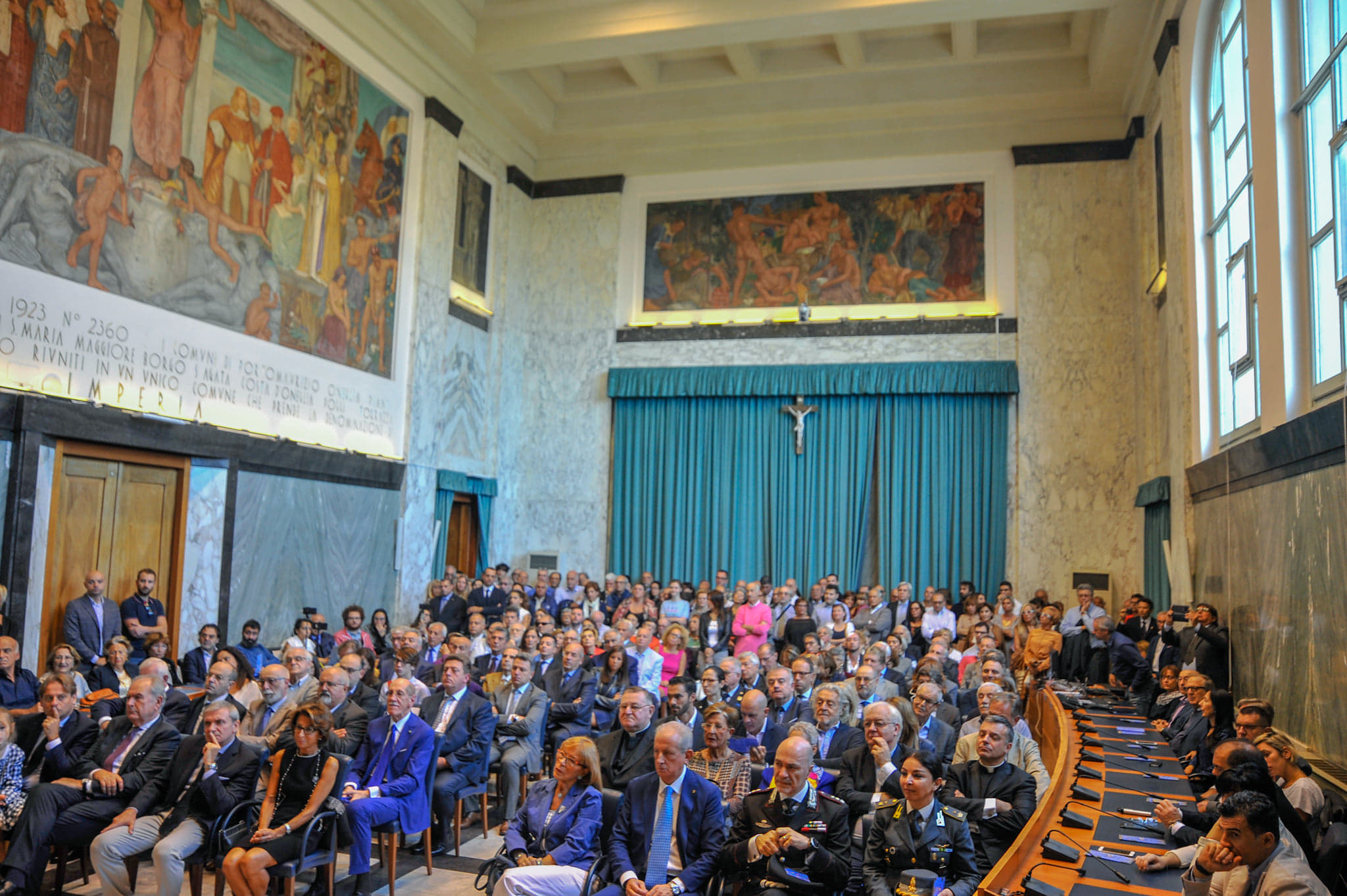 Sala consiliare del Comune di Imperia gremita per la Lectio Magistralis del giornalista Paolo Mieli sulla nascita della città di Imperia.