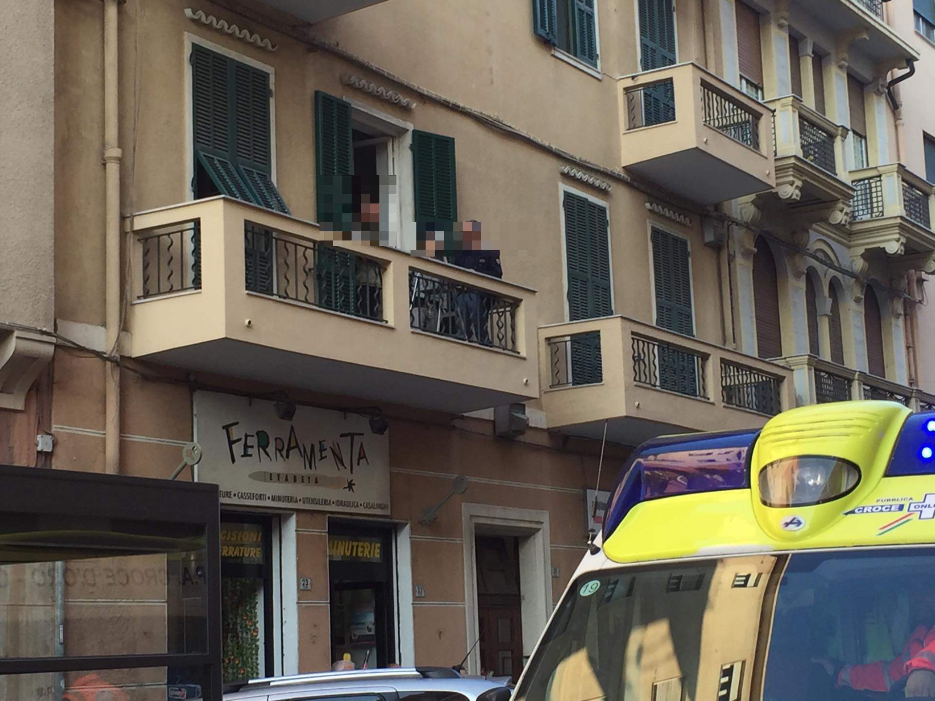 “Si tratta verosimilmente di un gesto deliberato“. È questo il commento del Procuratore aggiunto Grazia Pradella giunta in via Berio, questa mattina alle 9 circa, dove S.R. di 48anni si sarebbe lanciato dal balcone del suo appartamento, facendo un volo di oltre 4 metri, situato al primo piano di un condominio. L’uomo è stato soccorso dai militi della Croce d’Oro di Imperia e dal personale medico del 118 che lo hanno stabilizzato prima di accompagnarlo all’eliporto in zona San Lazzaro in attesa di essere trasbordato sull’elicottero dei vigili del fuoco.