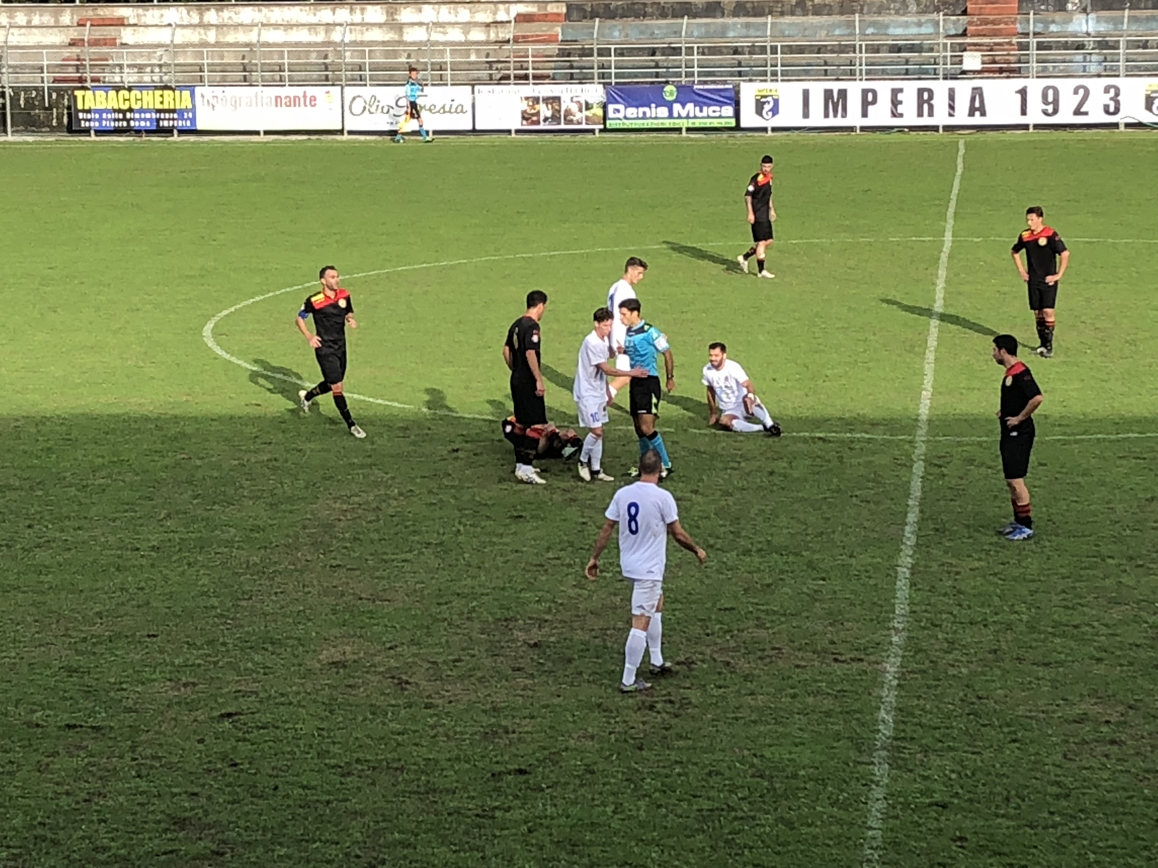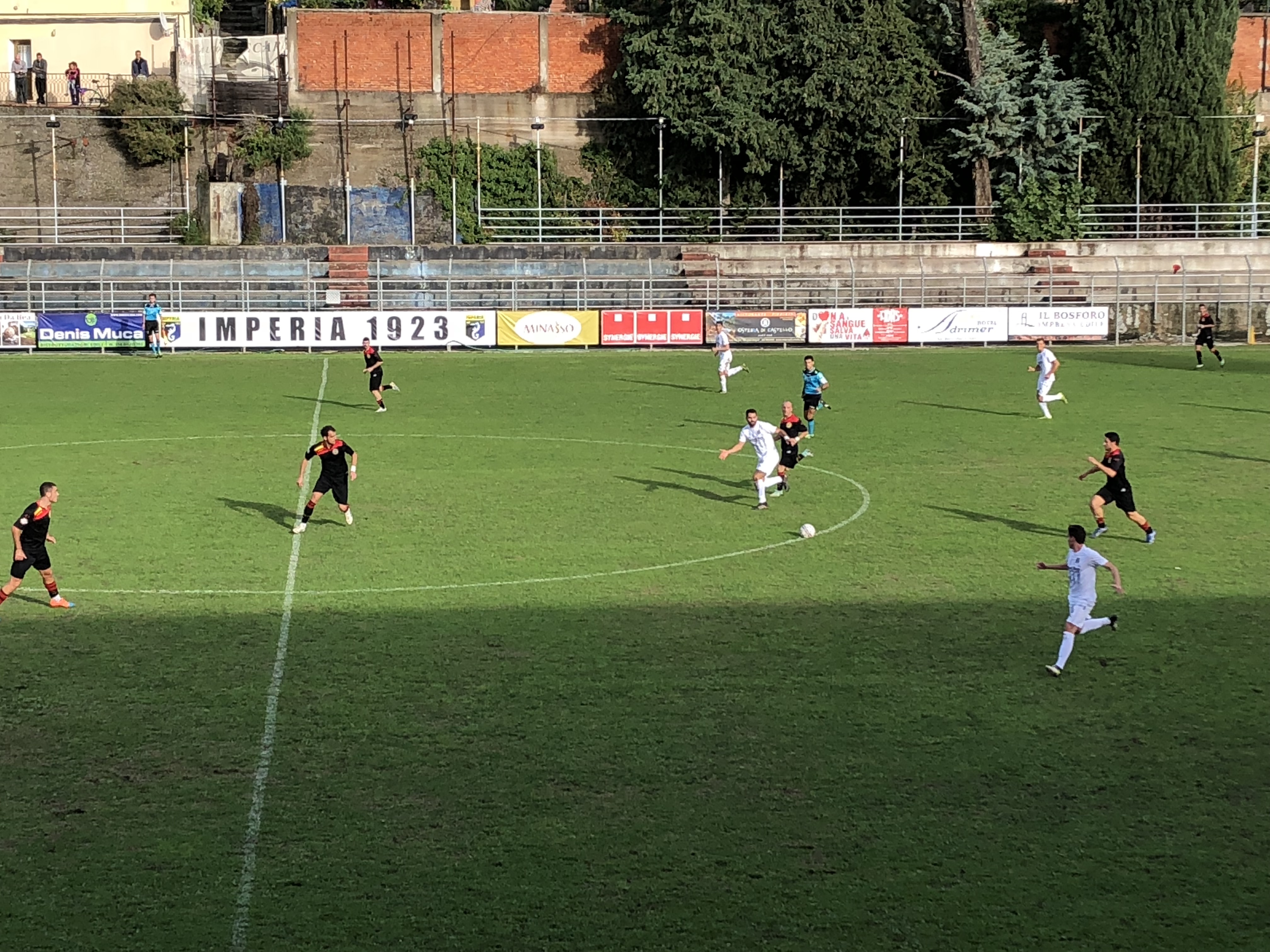 dell’Imperia e la Rivarolese, attualmente prima in classifica. Lo spettacolo comincia subito con l’Imperia in avanti grazie a Faedo che al 5′ ha subito un’occasione da rete a tu per tu con Filippo ma l’estremo difensore avversario è bravo in uscita bassa
