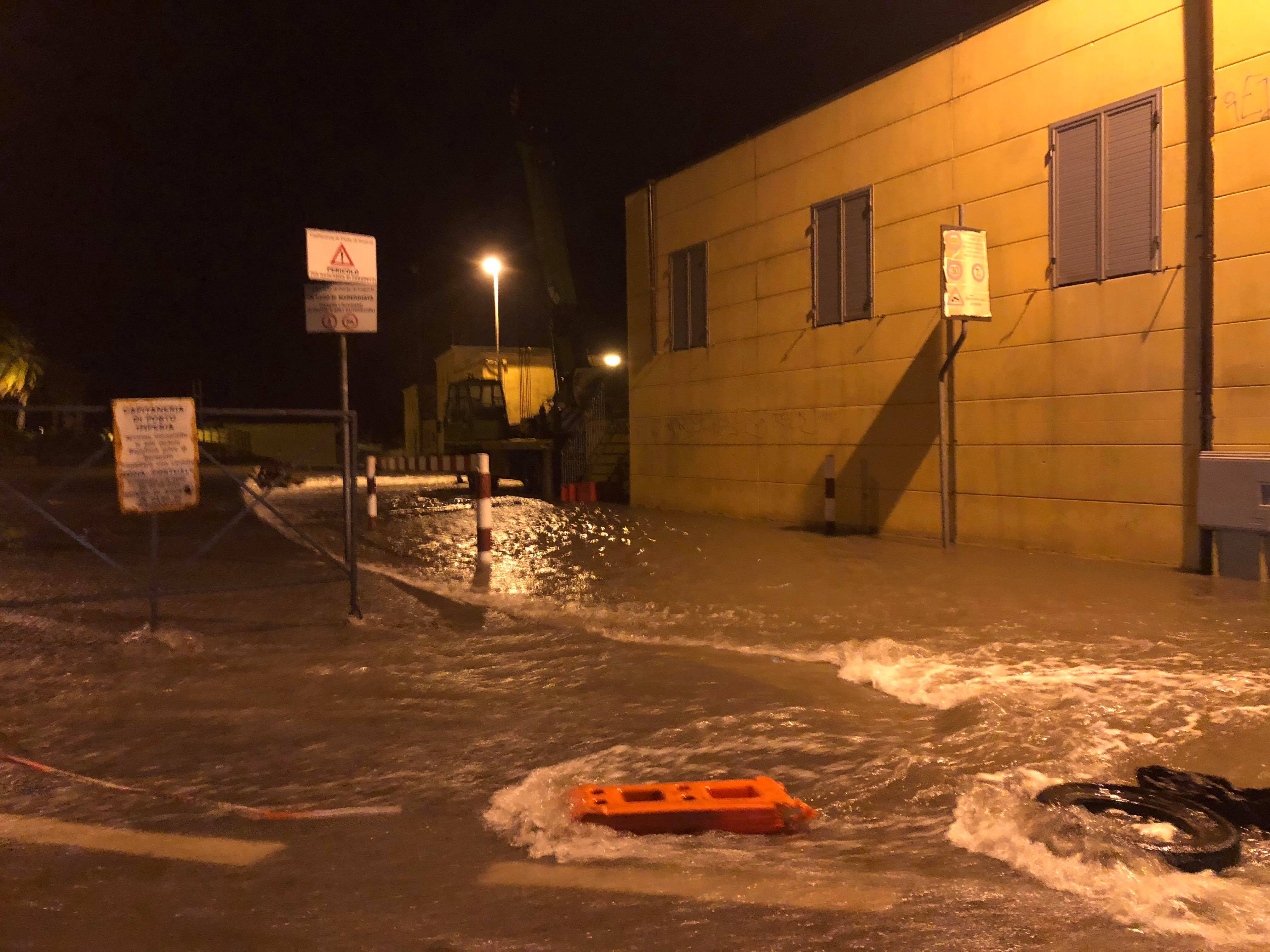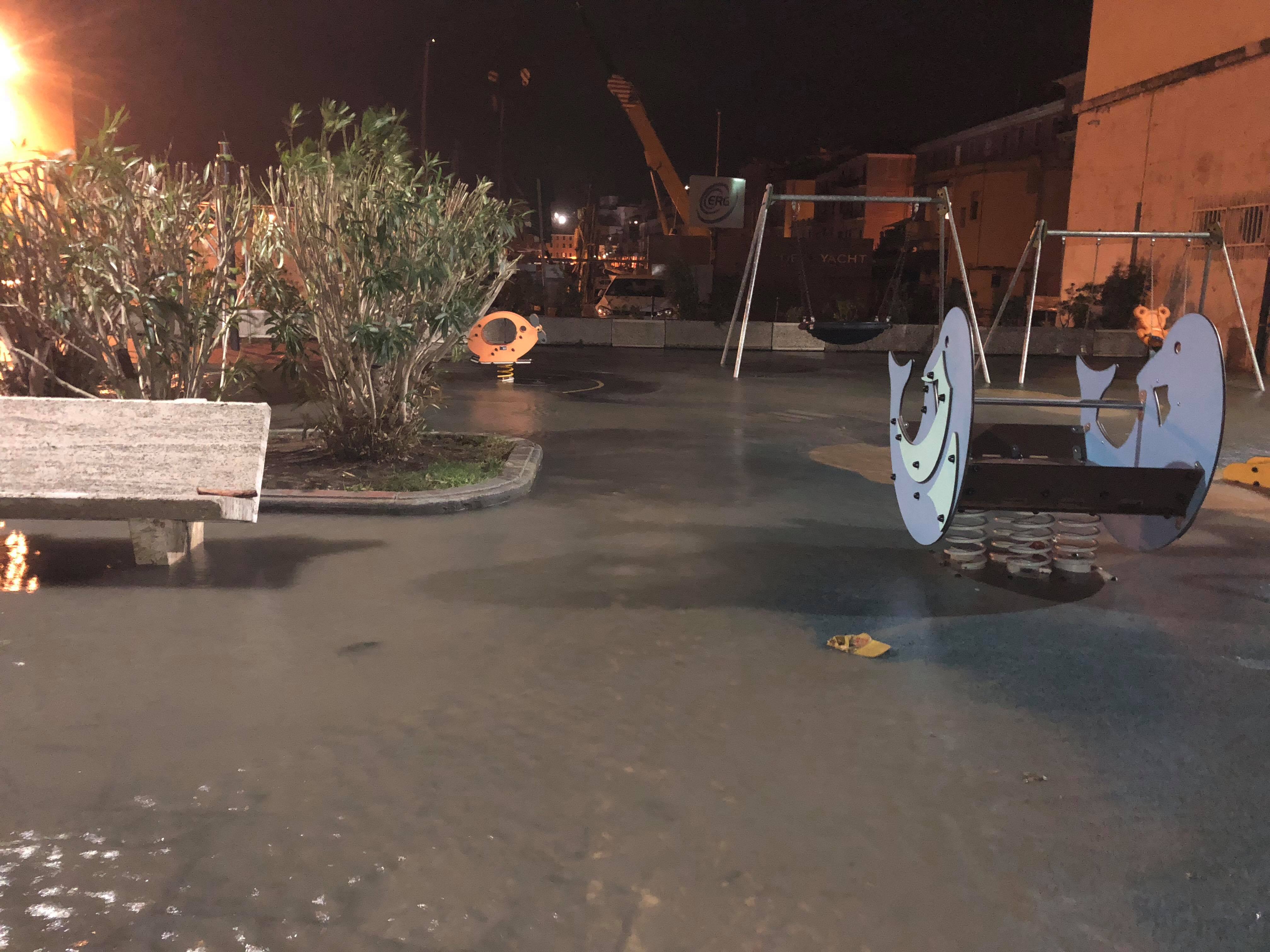 Continuano le emergenze in tutto il comprensorio imperiese e dianese. A causa di una forte mareggiata e dell’abbondante pioggia abbattutasi sul territorio nelle ultime ore, tutto il piazzale Cristino e parte della Spianata Borgo Peri sono stati invasi dall’acqua.