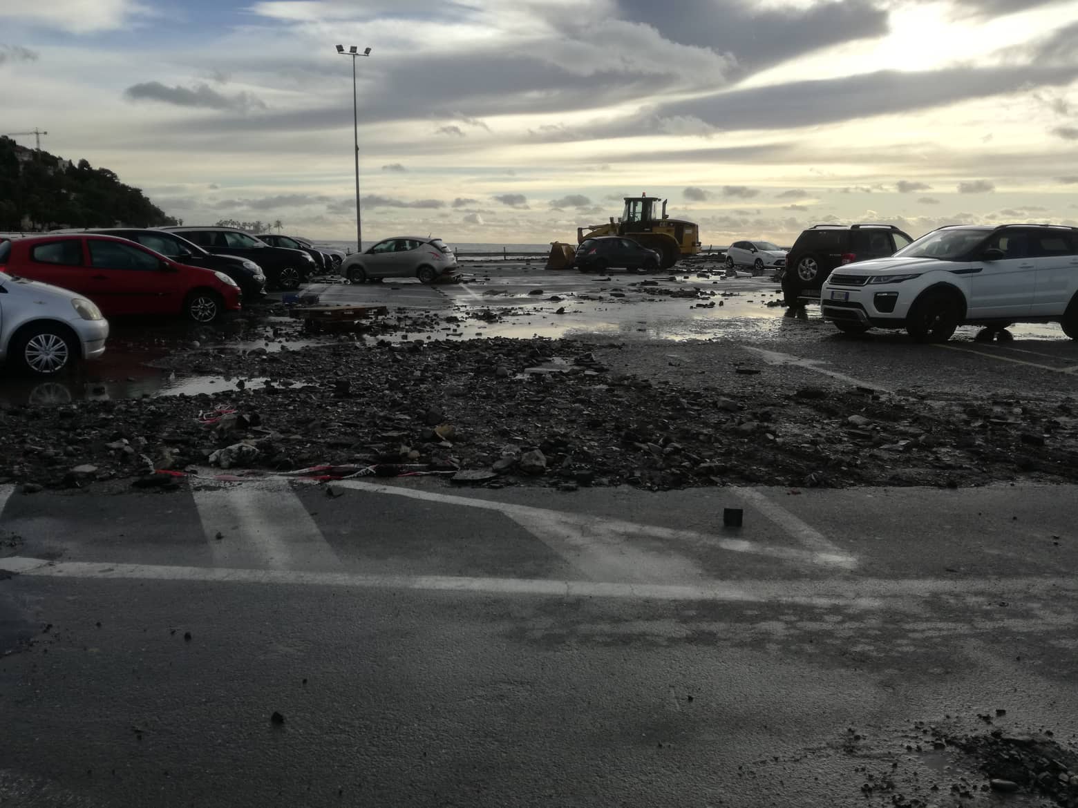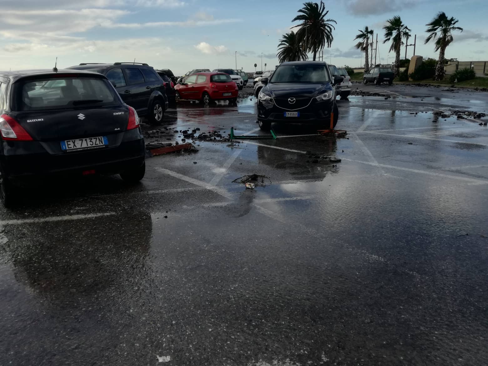 Le auto rimaste nel parcheggio di Padre Cristino hanno riportato danni e sono bloccate.