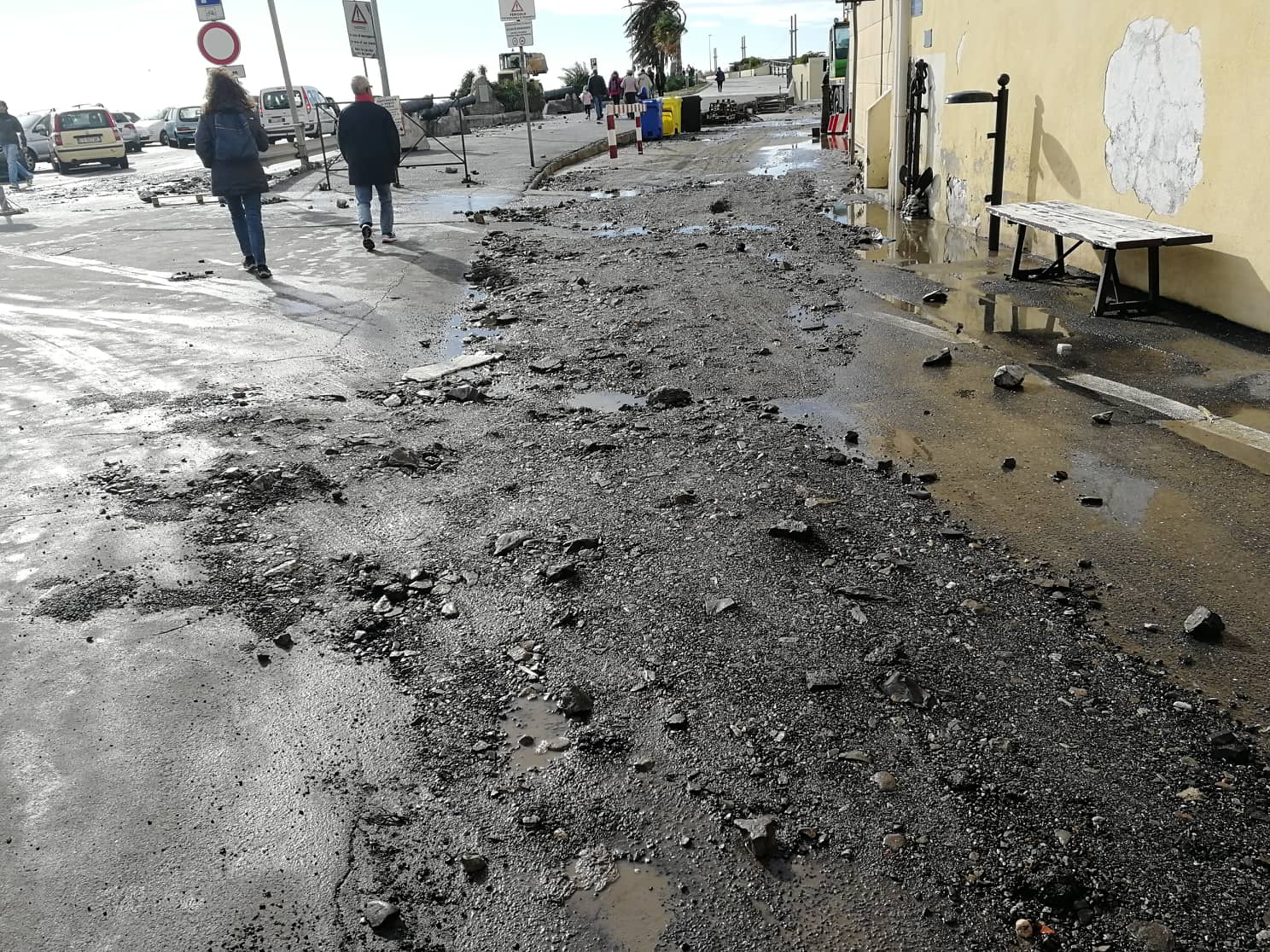 La spianata Borgo Peri, a causa della forza dirompente del mare, è stata gravemente danneggiata. La strada presenta numerose buche e cumuli di asfalto sono ammassati in diversi punti.