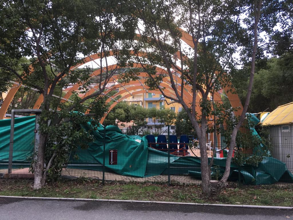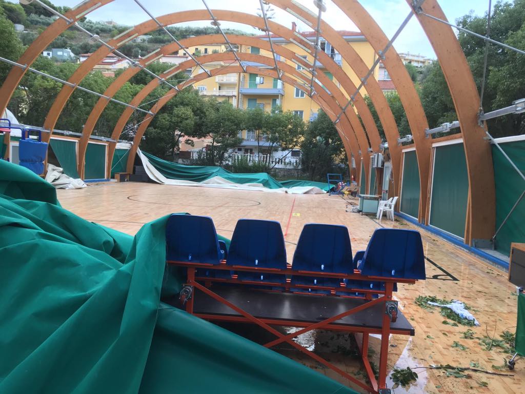 Gravi danni su tutto il ponente ligure a causa del maltempo di questa notte. A San Lorenzo al Mare il vento ha scoperchiato la palestra comunale. Il danno non è ancora quantificabile.