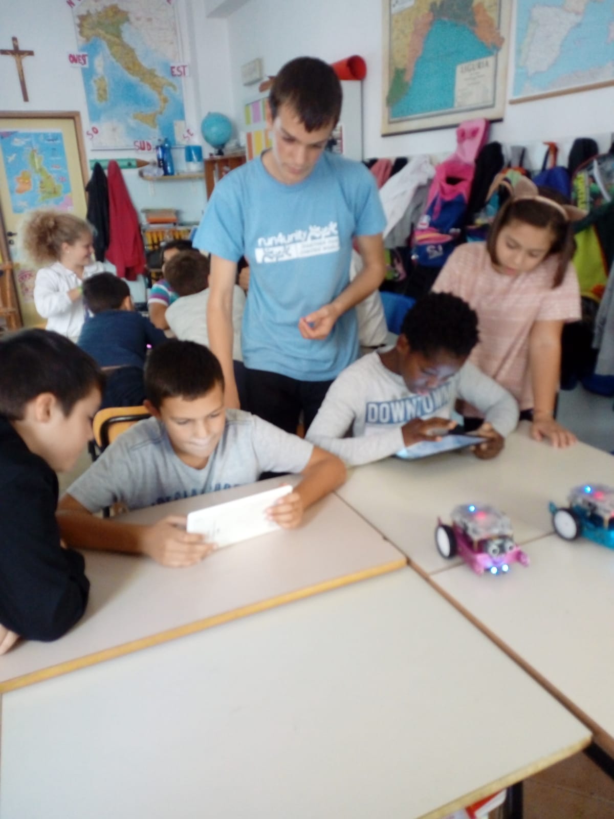 Nelle giornate del 10 e del 17 ottobre nel plesso di scuola primaria di via Gibelli le classi 5° sono state coinvolte con i loro insegnanti e gli operatori esterni della cooperativa FABLAB di Imperia in attività laboratoriale dedicate al Coding (robotistica).