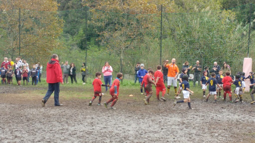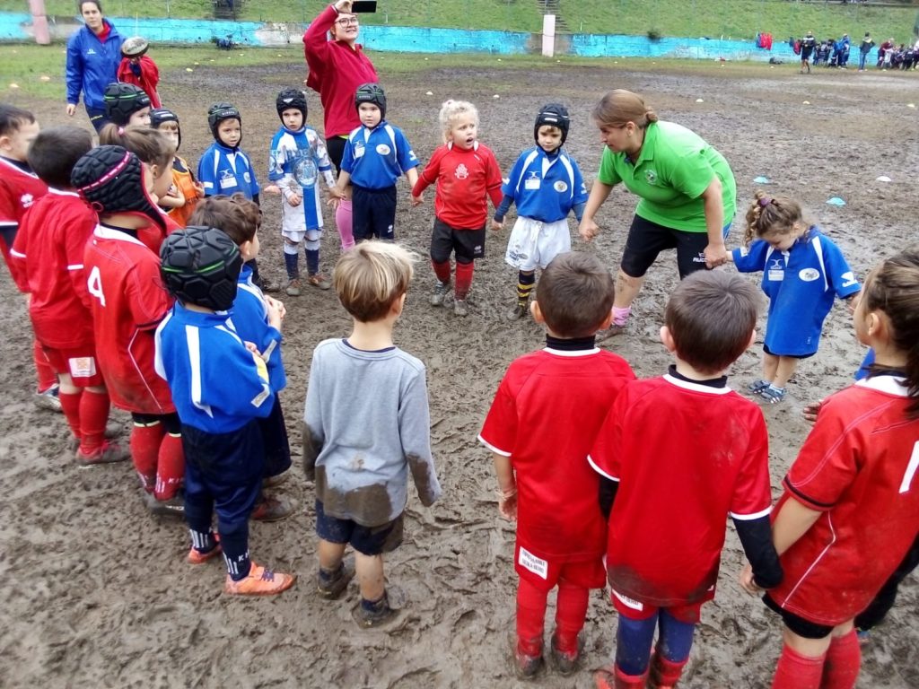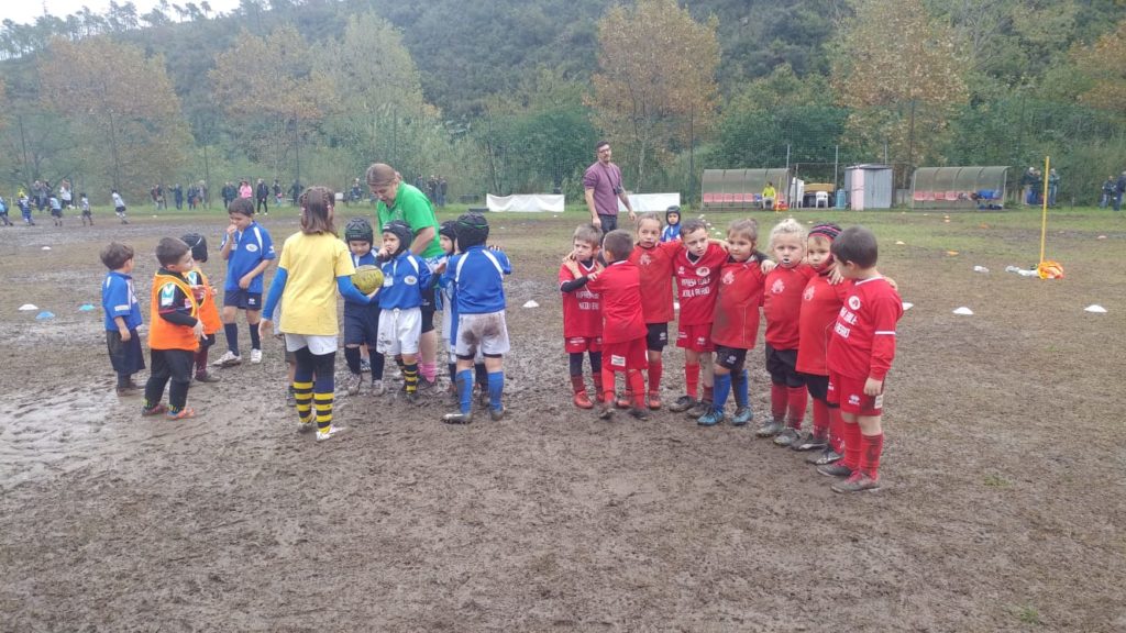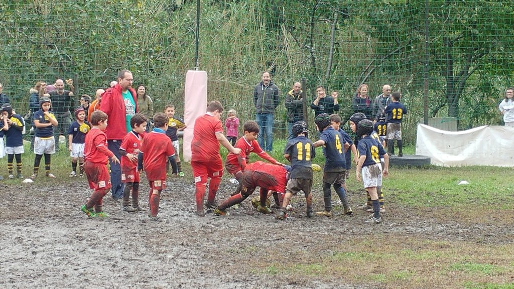 Under 6, i REDS sono una realtà per i piccoli, che affrontano spesso compagini miste poiché non tutte le società hanno a disposizione baby ruggers, ma i REDS hanno tecnici che invogliano e sanno far divertire e giocare i bambini e quindi via nel fango.