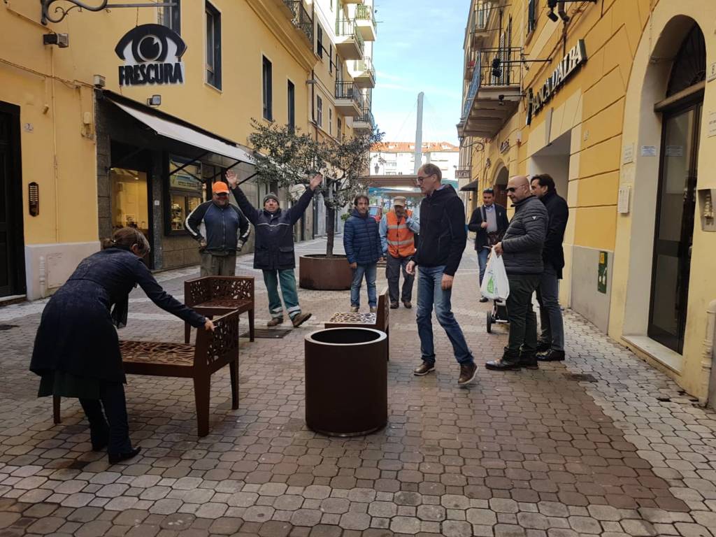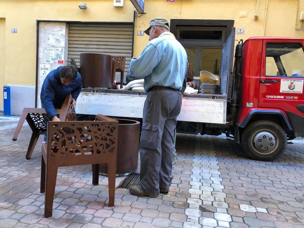 Nella mattinata di oggi, sono stati posizionati nuovi arredi in via Vieusseux, al fine di renderla più accogliente e per ricreare l’atmosfera di un “salotto” dove poter far rivivere la cultura rinascimentale e i personaggi importanti che sono cresciuti nella città di Imperia.