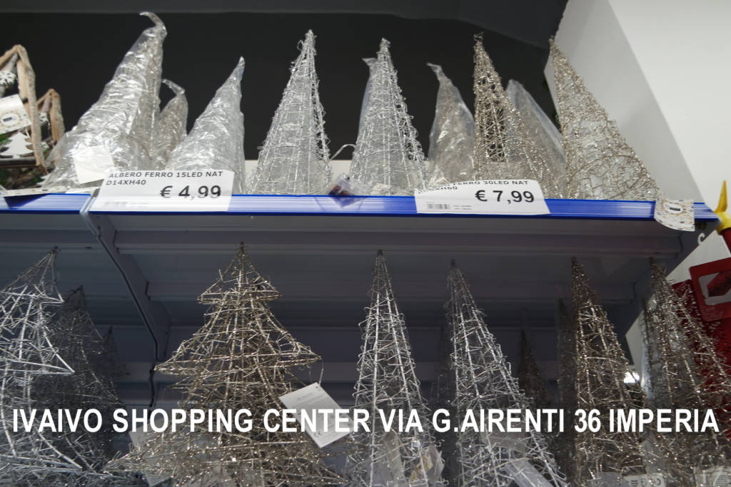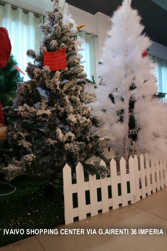 Imperia. Da Ivaivo Shopping Center, in via Giuseppe Airenti 36 a Porto Maurizio è arrivato il Natale! Tanti alberi di Natale, verdi, bianchi e innevati, addobbi, palline e decorazioni per la casa, presepi, statuine per il presepe, luci a led e basi per il fai da te di addobbi e palline.