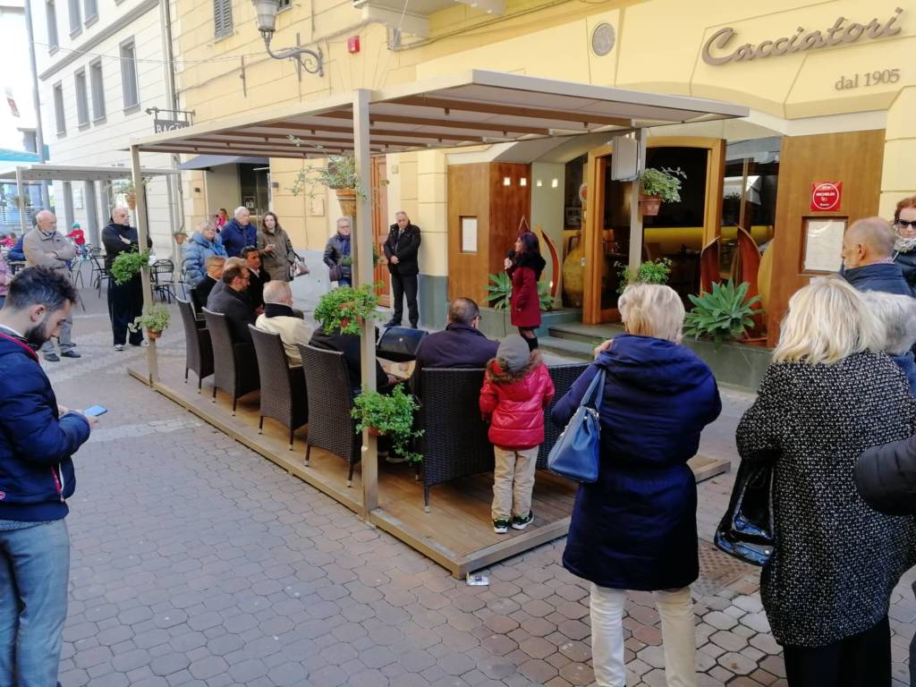 “Questa è una via storicamente importante per i “Cacciatori” che ha una storia antica,- ha dichiarato il sindaco di Imperia Claudio Scajola – per il collegamento tra i portici e quello che era allora uno dei più grandi carceri d’Italia che oggi è diventato un parco. L’iniziativa è buona, il comune ha dato una mano, certo che se riusciamo a ravvivare un po’ tutte le isole pedonali è una buona cosa. Questa mi sembra un’idea carica, che arreda e che da occasioni di incontro, quindi ben vengano altre iniziative come questa”.