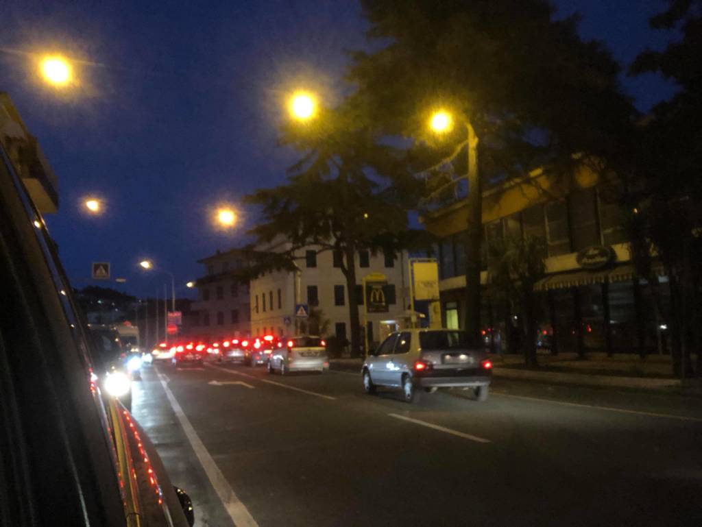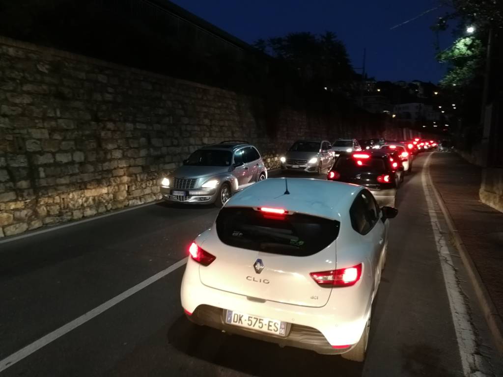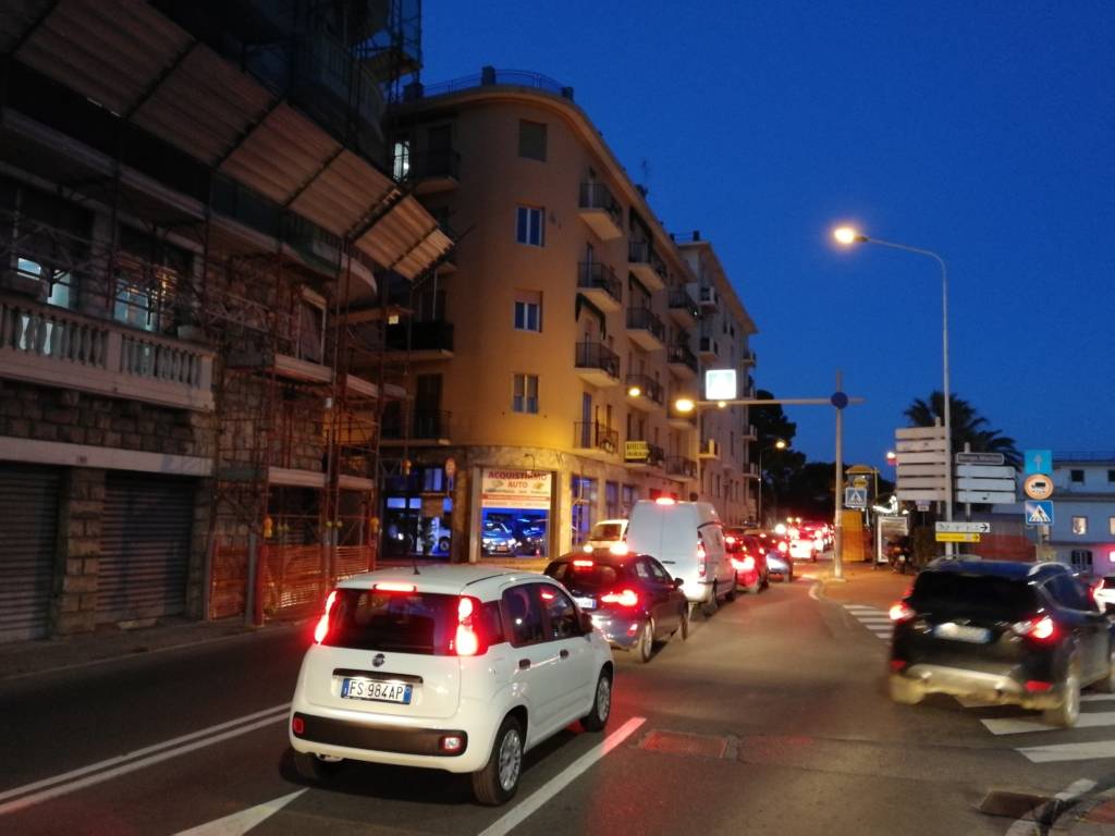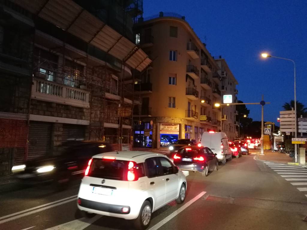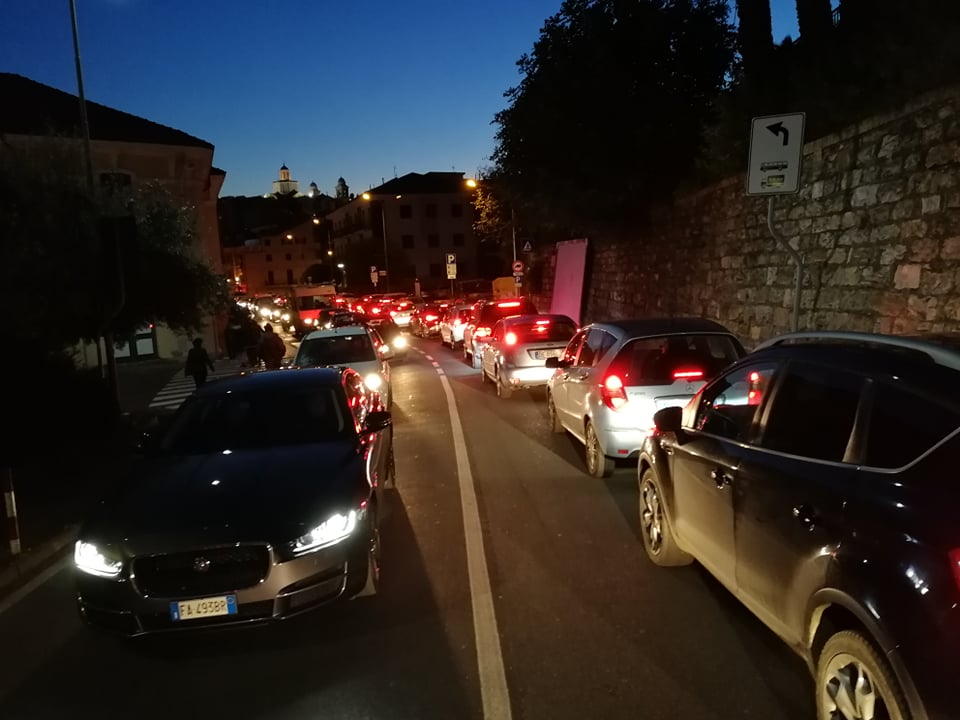 Una coda lunga quasi 3 km da galleria Gastaldi fino al centro di Oneglia. Un serpentone di macchine ha invaso l’Aurelia a partire da Corso Garibaldi per finire in piazza Dante Alighieri a Oneglia. In via Pirinoli e in Corso Garibaldi le auto vanno a passo d’uomo da ore. L’esperimento della fiera di San Leonardo sul lungomare Vespucci e si riuscito sì dal punto di vista commerciale ma senza dubbio fallito dal punto di vista viabilistico.