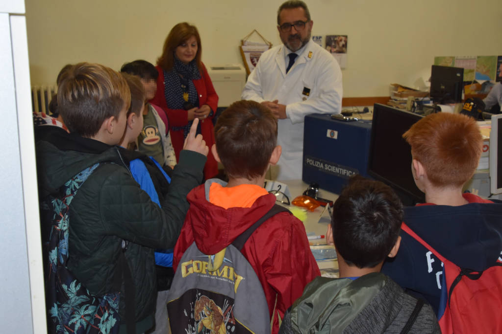 Ai ragazzi sono stati poi mostrati i locali della Polizia Scientifica ove gli esperti hanno catturato la loro attenzione grazie ai sofisticati macchinari e hanno rilevato le loro impronte, simulando un vero identikit.