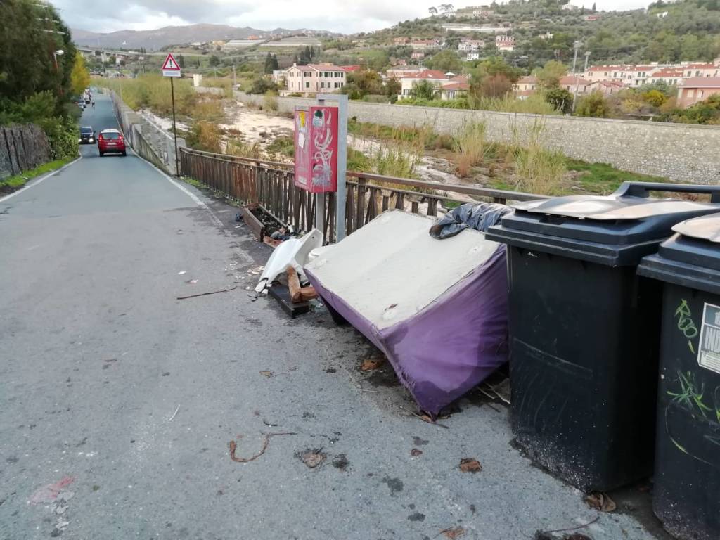 Ricevuta la segnalazione, un inviato di ImperiaPost si è recato sul posto per effettuare un sopralluogo, constatando di persona la presenza di rifiuti scaricati agli angoli dei bidoni della raccolta differenziata.