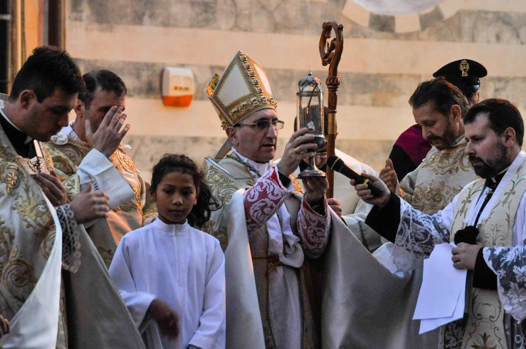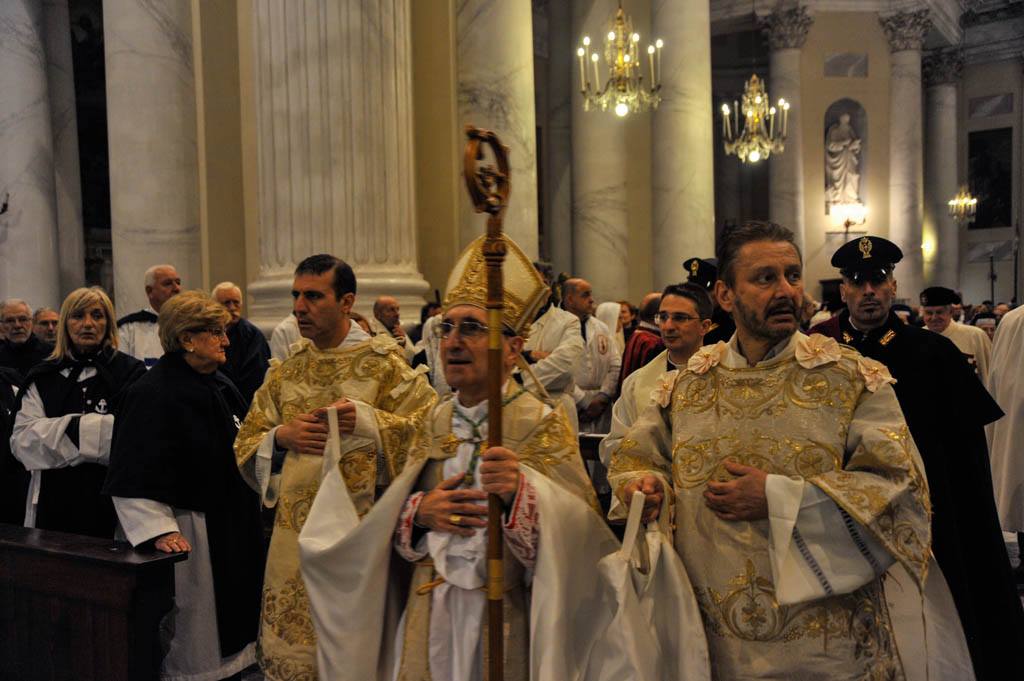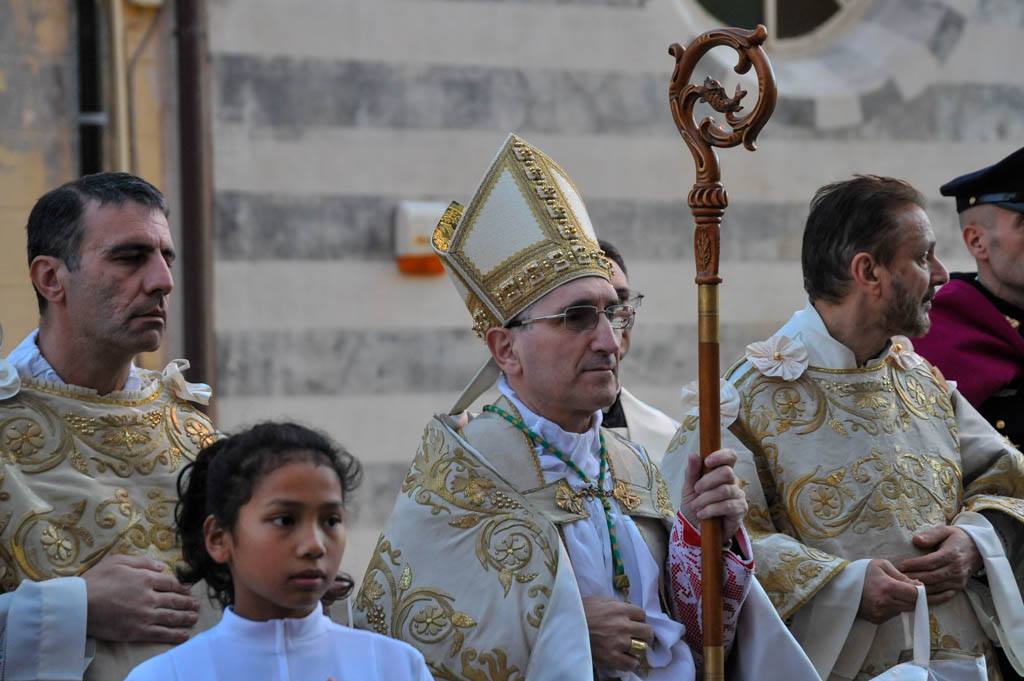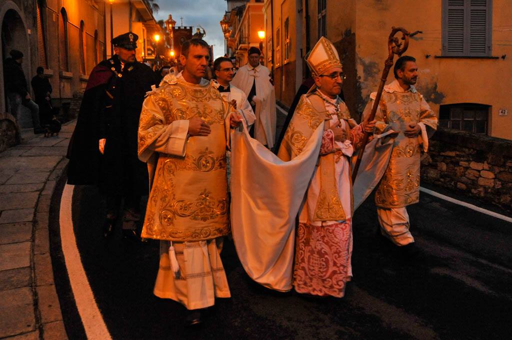 La cerimonia ha preso il via davanti Basilica di piazza Duomo, al termine dei Vespri, per poi attraversare le suggestive vie del Parasio, sostando presso la casa di San Leonardo, per poi tornare infine in piazza.