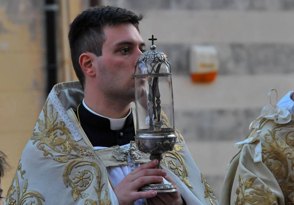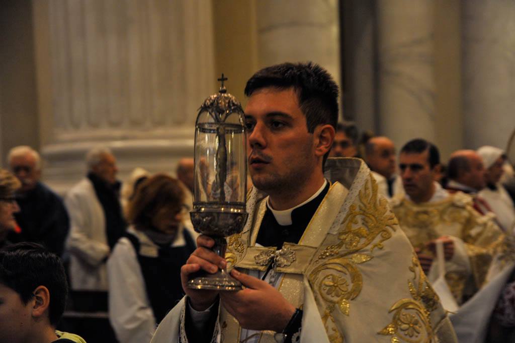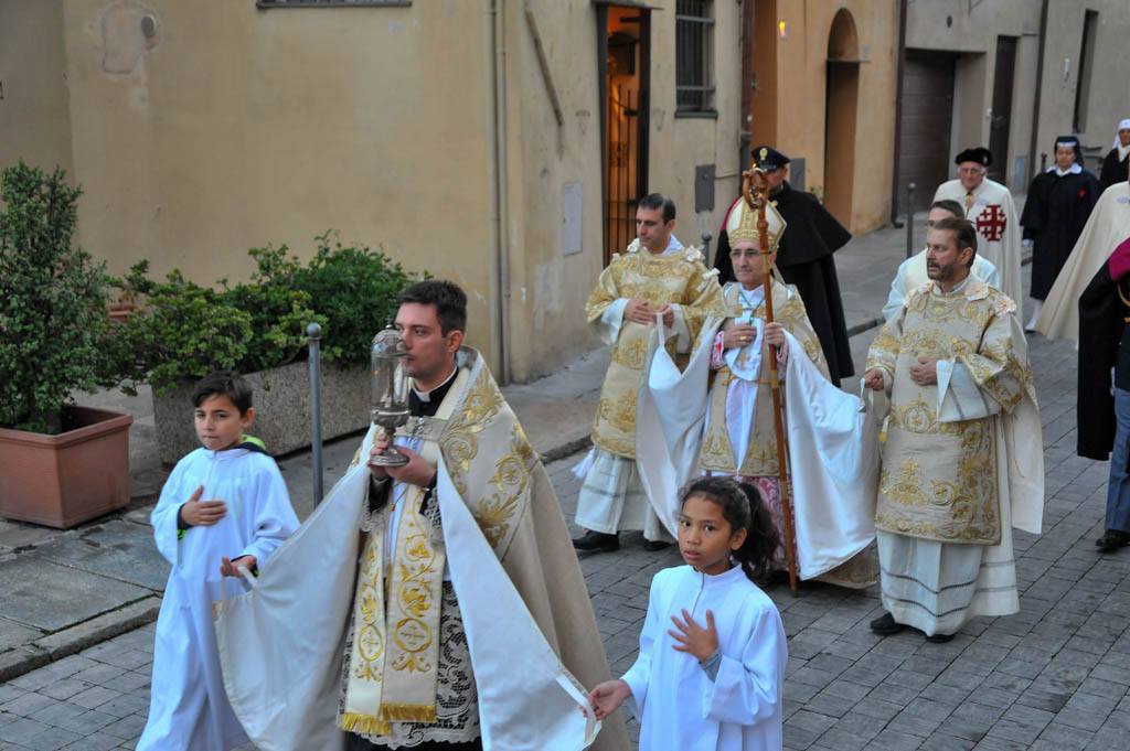 Una volta tornati nella Basilica, i fedeli sono stati benedetti da Mons. Borghetti con la reliquia del Santo che ha abitato nell’oratorio di Santa Caterina.