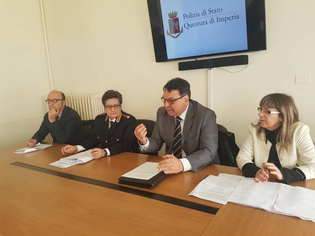 L’iniziativa, che costituisce una novità per questa provincia, è stata fortemente voluta dal Questore dottor Cesare Capocasa, ed è stata sin dall’inizio condivisa dal Direttore dell’Ispettorato territoriale del Lavoro di Genova e Imperia dottor Fabrizio Nativi, dal Direttore Generale dell’ASL 1 Imperiese dottor Marco Damonte Prioli, dall’allora Direttore dell’INPS di Imperia, dott.ssa Carnevale Maria Domenica, nonché dall’attuale Direttore, dott.ssa Cammarata Irene Rosaria.