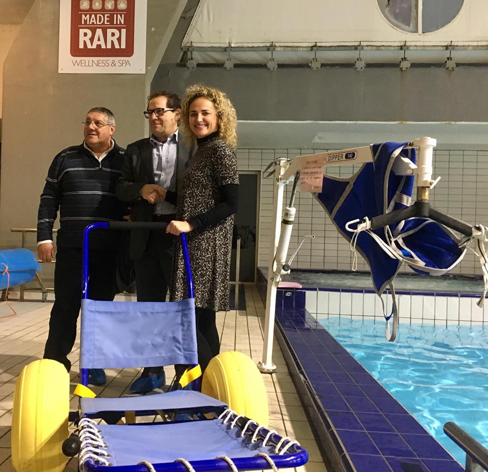 Nello specifico, l’attrezzo servirà per accompagnare in vasca il fruitore, allargando così la fornitura degli strumenti messi a disposizione dalla Rari per persone con deficit motori e difficoltà di deambulazione.
