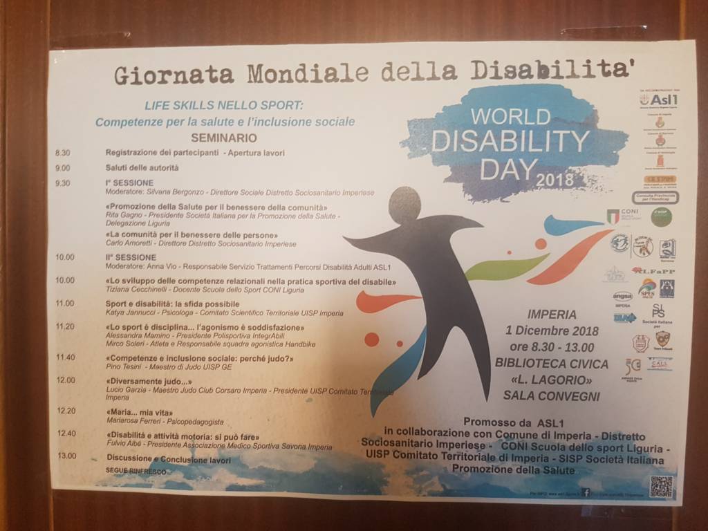 Si è svolto oggi in Sala Convegni alla Biblioteca Lavorio di Imperia, il seminario in occasione della ‘Giornata Mondiale della Disabilità’, intitolato titolo “Like Skills nello sport: competenze per la salute e l’inclusione sociale’.