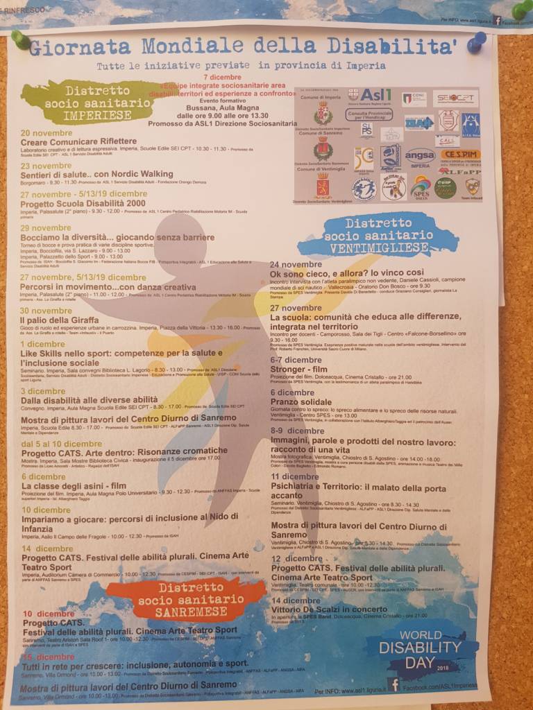 “Come Asl abbiamo pensato di organizzare una serie di giornate iniziate il 20 di novembre e che si concluderanno il 15 di dicembre sul tema della disabilità.