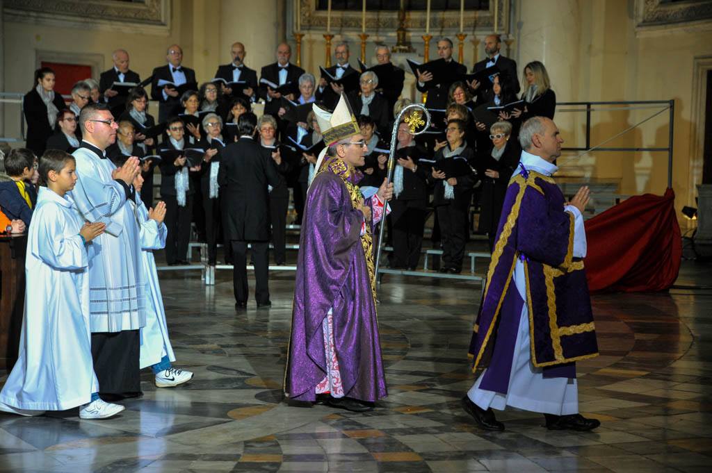 La Santa messa è stata celebrata da Mons. Giacomo Borghetti Vescovo di Albenga-Imperia e concelebrata dal Parroco della Basilica don Lucio Fabbris e dal Vicario parrocchiale don GianLuigi Peirano.