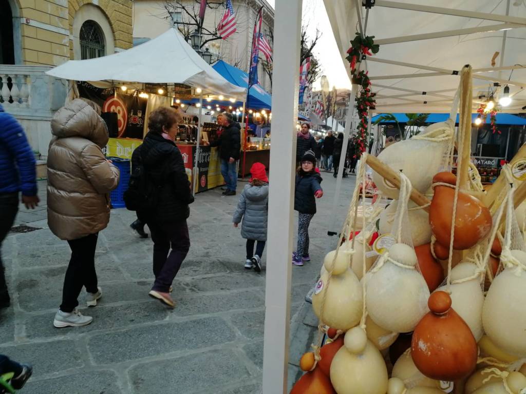 Lungo via XX Settembre e in parte dell’area pedonale di via Cascione sono stati allestiti oltre 30 stand di prodotti tipici, di idee regalo per il Natale e di artigianato.