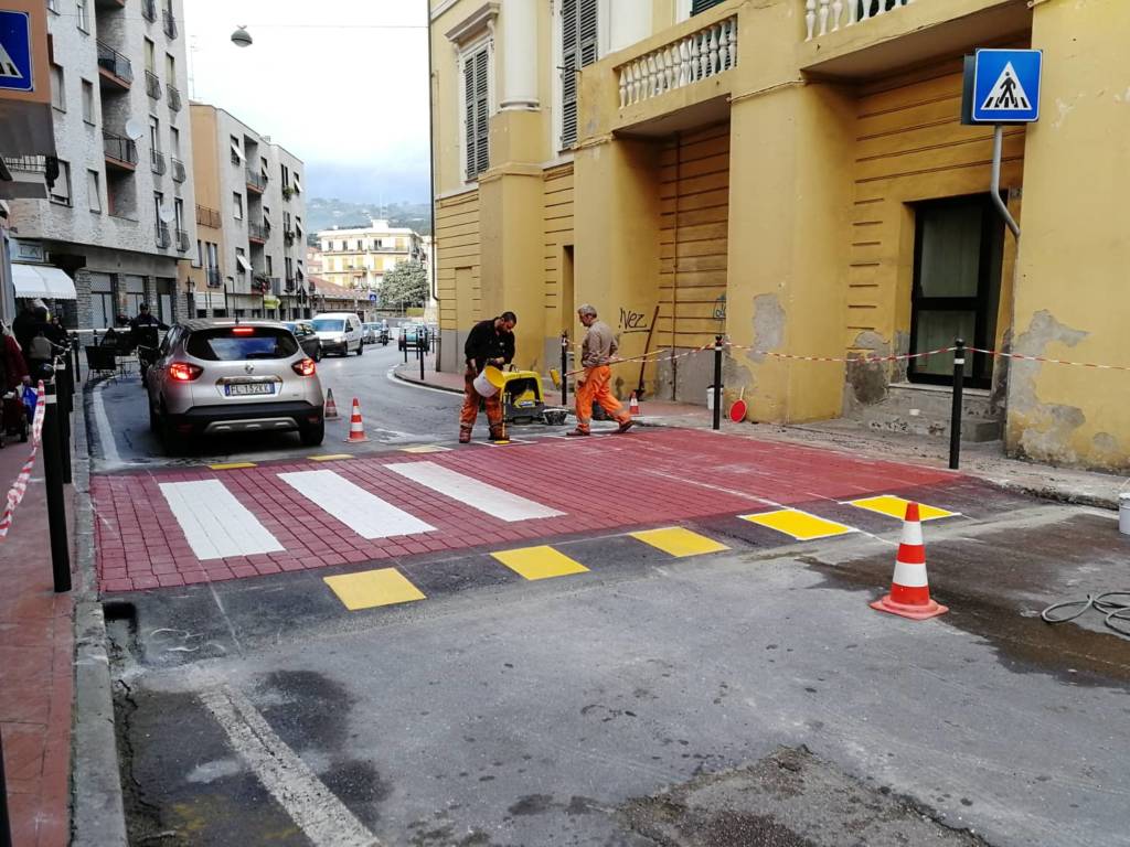 È stato realizzato il primo dei cinque attraversamenti pedonali rialzati che sorgeranno a Imperia, in zone ritenute, sotto il profilo viabilistico, più a rischio.