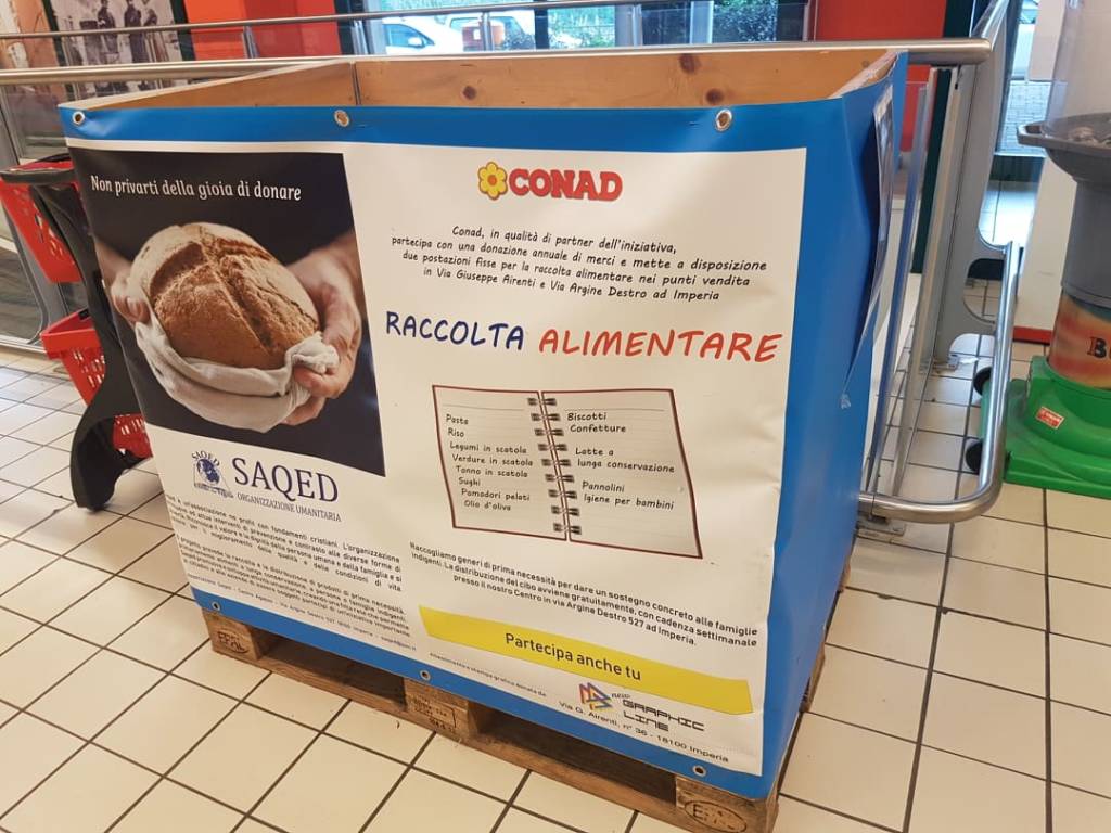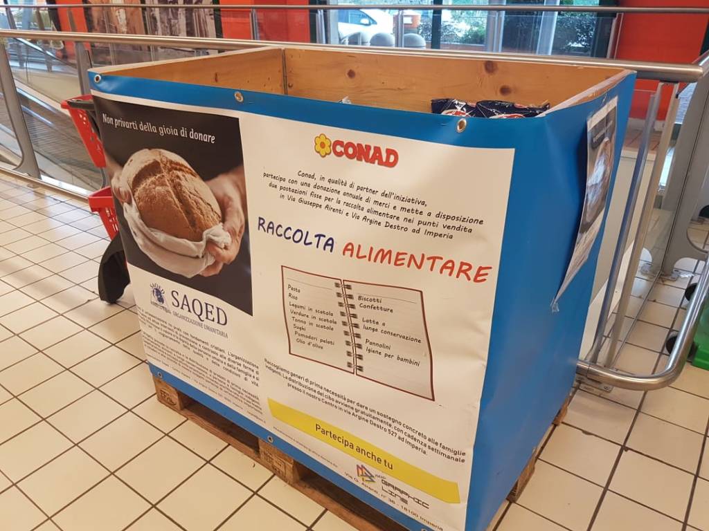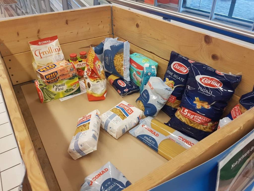 L’Associazione, tramite un accordo con i supermercati Conad, ha istituito dei box all’interno dei punti vendita di via Argine Destro e via Airenti, dove è possibile, ogni giorno, donare alimenti.