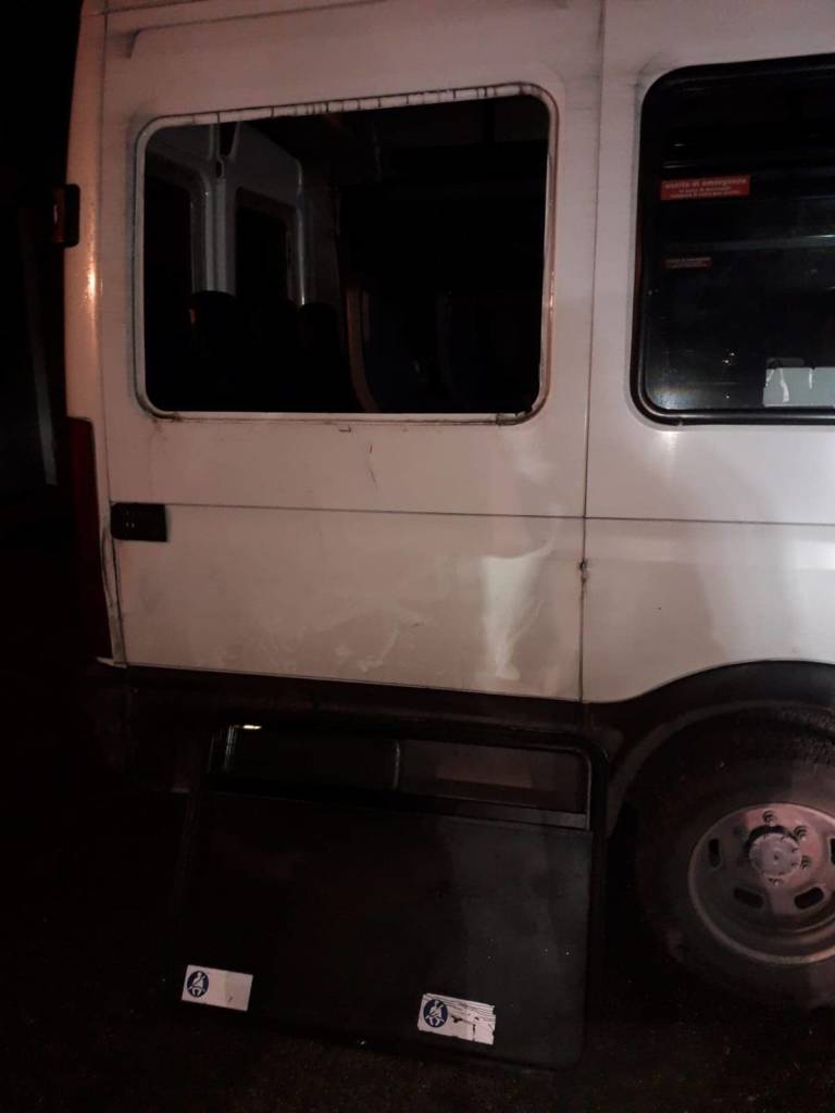 Al momento dell’arrivo del mezzo della Rt, però, sarebbero iniziati i disordini, poiché alcuni dei presenti, alterati dall’alcol, una volta appresa la possibilità di non salire tutti sul mezzo, avrebbero cominciato a colpire i vetri del mezzo, rompendoli, e danneggiando gli interni.