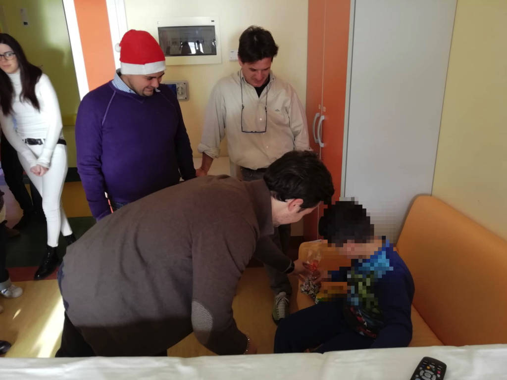 “È un momento bellissimo, – ha commentato il direttore generale dell’Asl 1 Marco Damonte Prioli – è un momento in cui i bambini che abbiamo ricoverati da noi per qualche problema, per fortuna lieve, vivono un Natale con qualcuno che pensa a loro che non sia strettamente sanitario ma qualcuno che porta dei doni e che cerca quindi di alleviare un po’ la sofferenza, il dolore che si ha quando si viene qui in ospedale. Sono momenti veramente belli che avvicinano la società civile a quello che è l’aspetto sanitario e quindi io non faccio altro che ringraziare da questo punto di vista tutte le associazioni, in questo caso il Rotaract per l’impegno e la volontà di collaborare con noi nelle strutture sanitarie per dare un servizio sempre migliore anche in questi giorni di festa, quindi grazie ancora”.